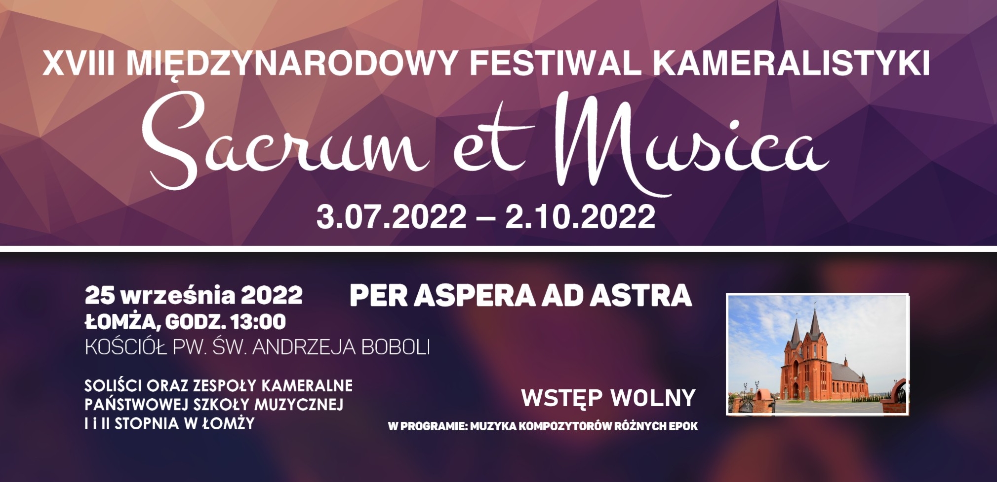 Filharmonia Kameralna w Łomży zaprasza na kolejny koncert w ramach XVIII Międzynarodowego Festiwalu Kameralistyki Sacrum et Musica.