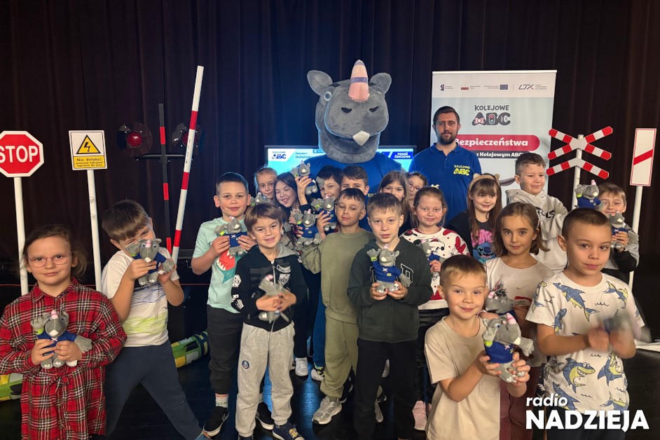 Do Szkół Katolickich w Łomży zawitał we wtorek (09.12) popularny „Rogatek”, czyli główny bohater kampanii „Kolejowe ABC”, która ma przybliżać najmłodszym zasady bezpieczeństwa na torach kolejowych. Jego wizyta wzbudziła entuzjazm wśród uczniów, którzy jednak musieli też popisać się wiedzą na temat tego, jak właściwie zachowywać się w okolicach torów.