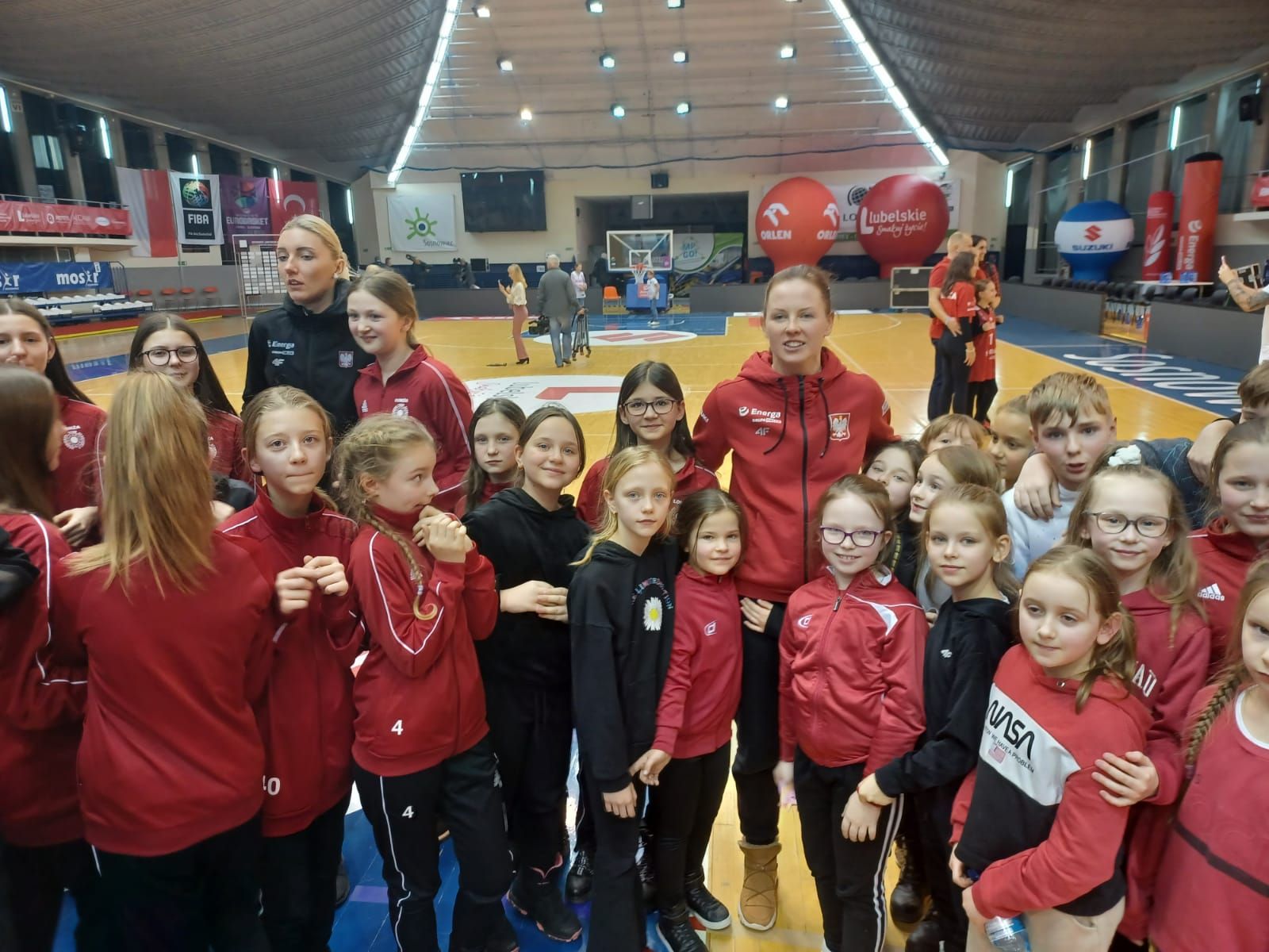 Zawodniczki Uczniowskiego Klubu Sportowego 4 Łomża oraz uczniowie Szkoły Podstawowej nr 4 w Łomży kibicowali Reprezentacji Polski Kobiet w koszykówce, który odbył się w czwartek 9 lutego br. w Sosnowcu.