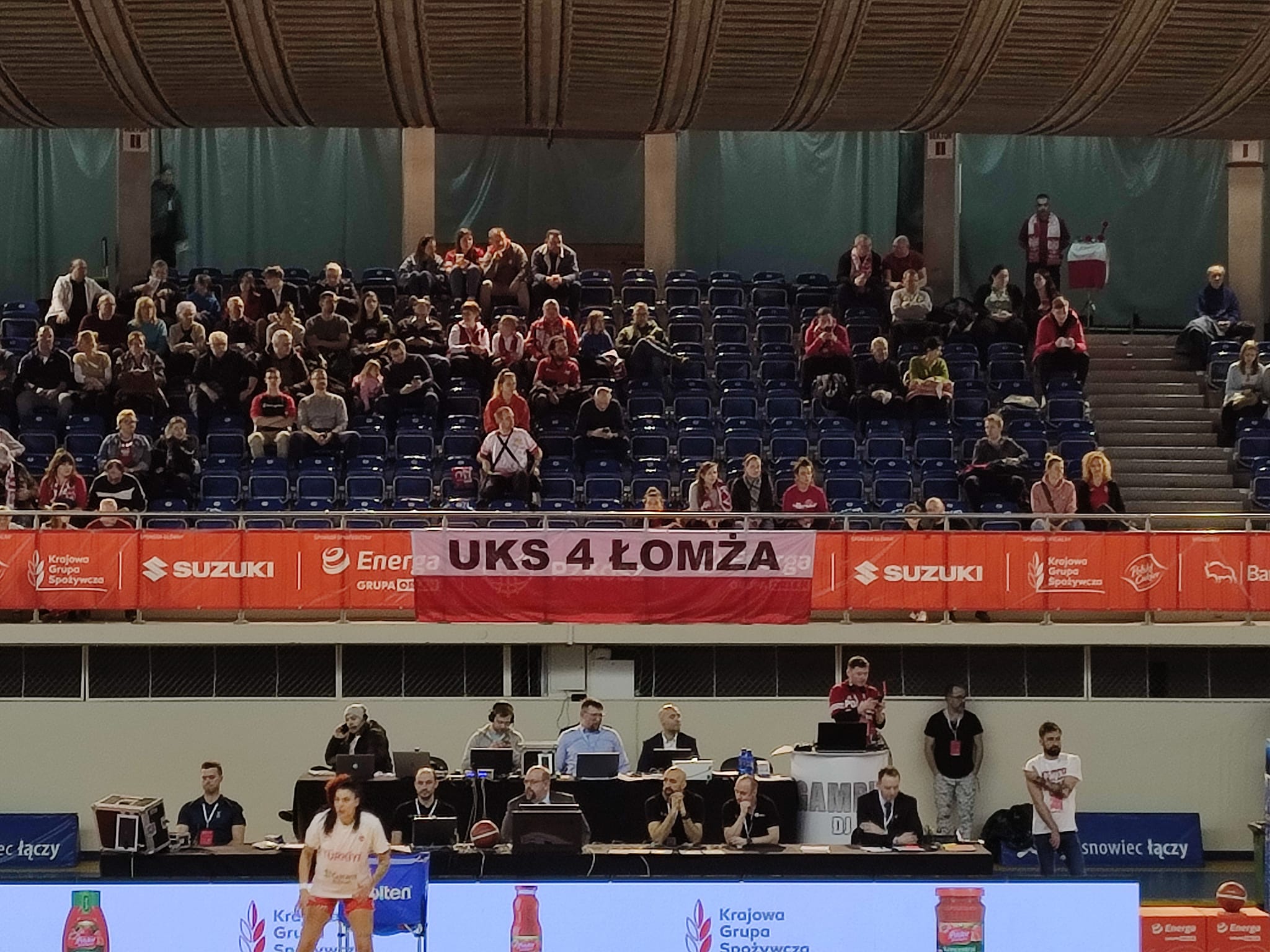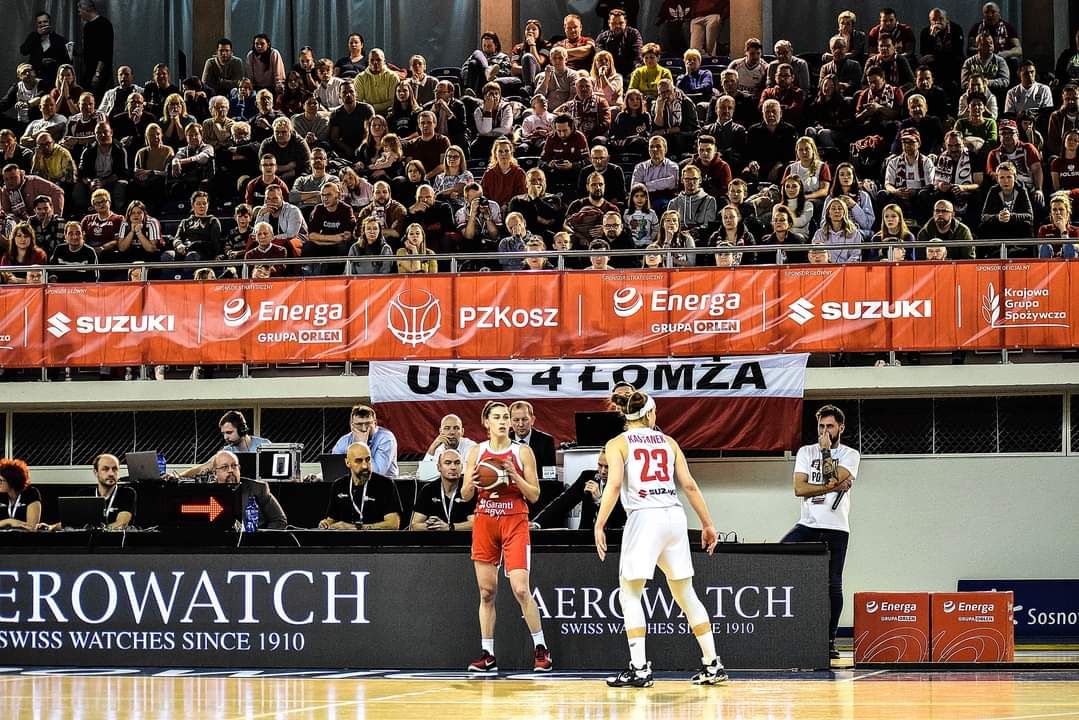 Spotkanie można było oglądać w telewizji w TVP Sport. Niewątpliwie ciekawość mieszkańców Łomży mógł wzbudzić ogromu baner UKS Łomża wyeksponowany po obu stronach hali. „Kochamy koszykówkę, ale kochamy też swoje miasto, dlatego chcemy je promować w całej Polsce nie tylko jako zawodnicy, ale też jako kibice. Stąd pomysł wywieszania naszego baneru podczas meczu” – komentuje Pan Marcin Piotrowski dyrektor Szkoły Podstawowej nr 4 w Łomży oraz trener i prezes UKS 4 Łomża – „Dzieciaki od dawna marzyły o takim wyjeździe i w końcu udało nam się to marzenie spełnić. Bardzo nas to cieszy i na pewno mocno motywuje nasze zawodniczki do dalszej pracy i osiągania sukcesów”.