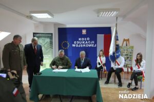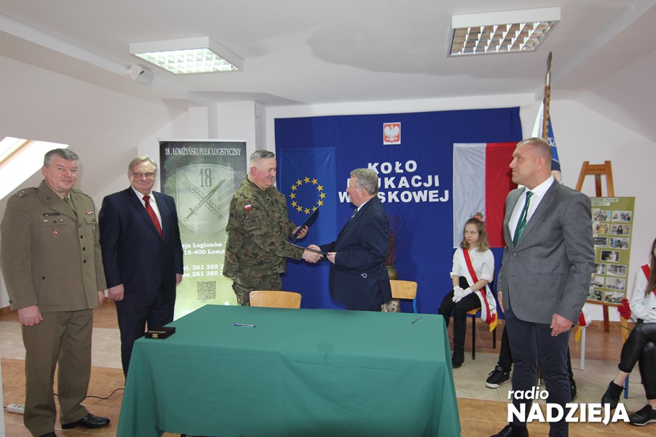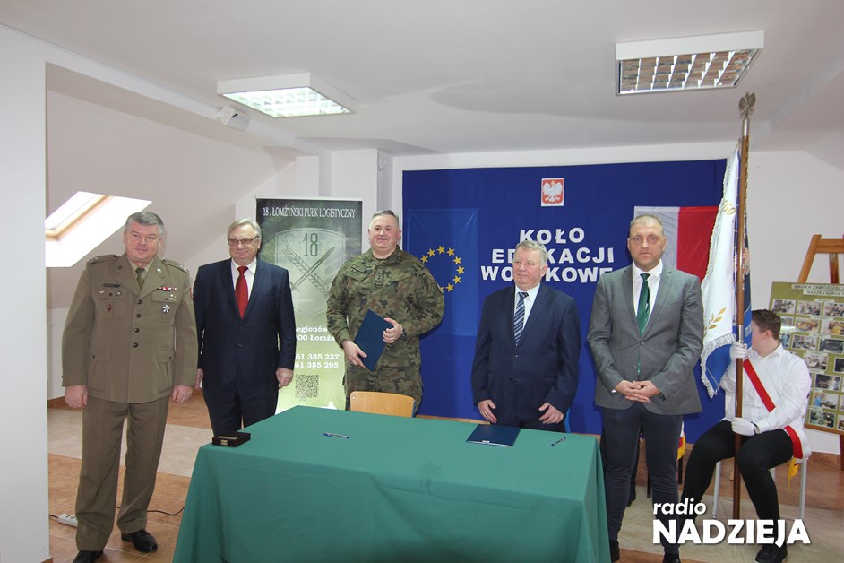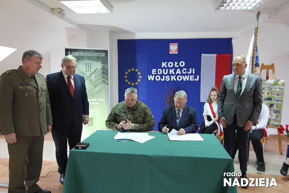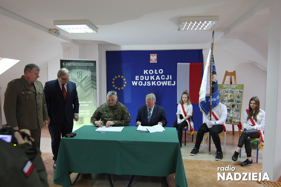 Dziś w Zespole Szkół Stowarzyszenia Wspierania Edukacji i Rynku Pracy w Łomży została podpisana umowa z 18 Łomżyńskim Pułkiem Logistycznym. Dzięki temu spotkaniu rozpocznie się działanie pierwszego w Polsce Koła Edukacji Wojskowej w branżowej szkole.