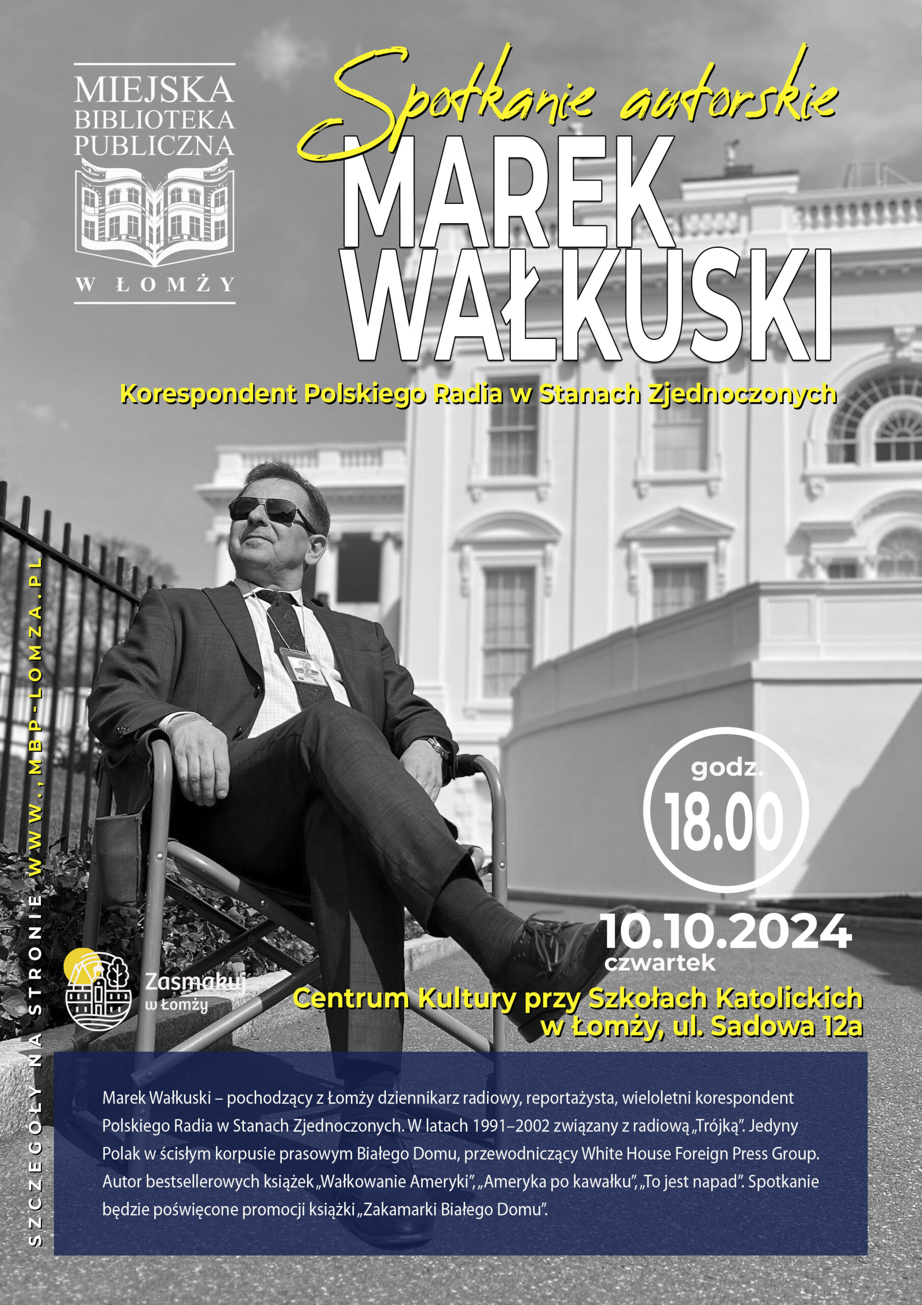-W trakcie spotkania będą poruszane różne wątki. Z pewnością będzie dominował wątek działalności zawodowej, ale spotkanie będzie dotyczyło promocji premierowej książki ,,Zakamarki Białego Domu”. 9 października książka będzie miała premierę, a 10 października mieszkańcy Łomży będą mieli okazję o niej porozmawiać.