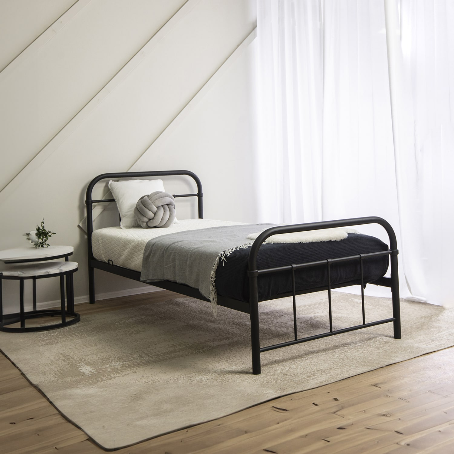 Stabilna konstrukcja to jedna z wielu zalet łóżek metalowych. Wytrzymały surowiec sprawia, że łóżko może nam posłużyć przez wiele lat, nie tracąc nic ze swoich właściwości. Jedynym elementem, który będzie podlegać wymianie, to materac, który może ulec szybszemu zużyciu. Warto pamiętać o łatwości, z jaką metalowe łóżko można czyścić, a także o ogromnej odporności na wilgoć. Gładka powierzchnia konstrukcji umożliwia błyskawiczne zabiegi czyszcząco-zabezpieczające, aby doprowadzić łóżko metalowe do porządku, wystarczy zwykła ściereczka. Przez długie lata użytkowania metalowa rama nie traci nic ze swojego wyglądu i wciąż pozostaje atrakcyjnym elementem wyposażenia wnętrz. Ażurowa konstrukcja sprawia, że z łóżkiem metalowym w sypialni nie mamy żadnego problemu z utrzymaniem czystości. A to dlatego, że łóżka tego typu często zachowują dużą wysokość w stosunku do podłogi, więc spokojnie dotrzemy z odkurzaczem czy robotem sprzątającym do wszystkich powierzchni wokół łóżka.