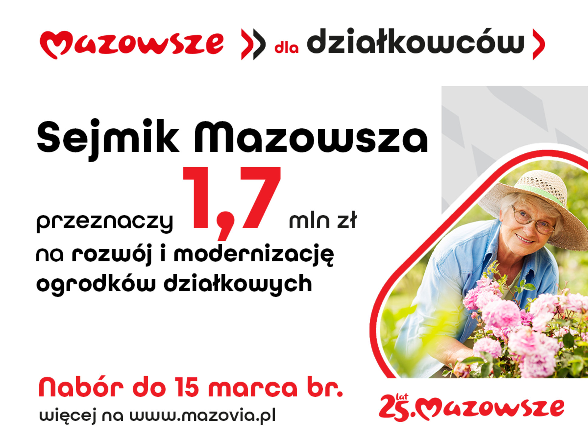 Mazowieccy działkowcy z kolejną szansą na dofinansowanie! Ruszyła właśnie piąta edycja autorskiego programu wsparcia samorządu Mazowsza, czyli „Mazowsze dla działkowców 2023”. Do rozdysponowania jest ponad 1,7 mln zł. Nabór wniosków trwa do 15 marca br