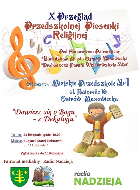 W budynku Starej Elektrowni w Ostrowi Mazowieckiej rozpocznie się X Przegląd Przedszkolnej Piosenki Religijnej pod hasłem: 'Dowiesz się o Bogu – z Dekalogu’. W ramach inicjatywy wystąpią dzieci z trzech miejskich przedszkoli.