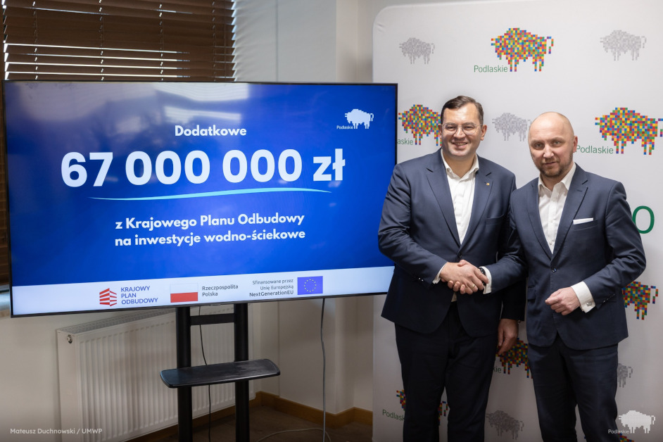 Województwo podlaskie otrzyma dodatkowe 67 milionów złotych z Krajowego Planu Odbudowy na realizację inwestycji w gospodarkę wodno-ściekową na terenach wiejskich.