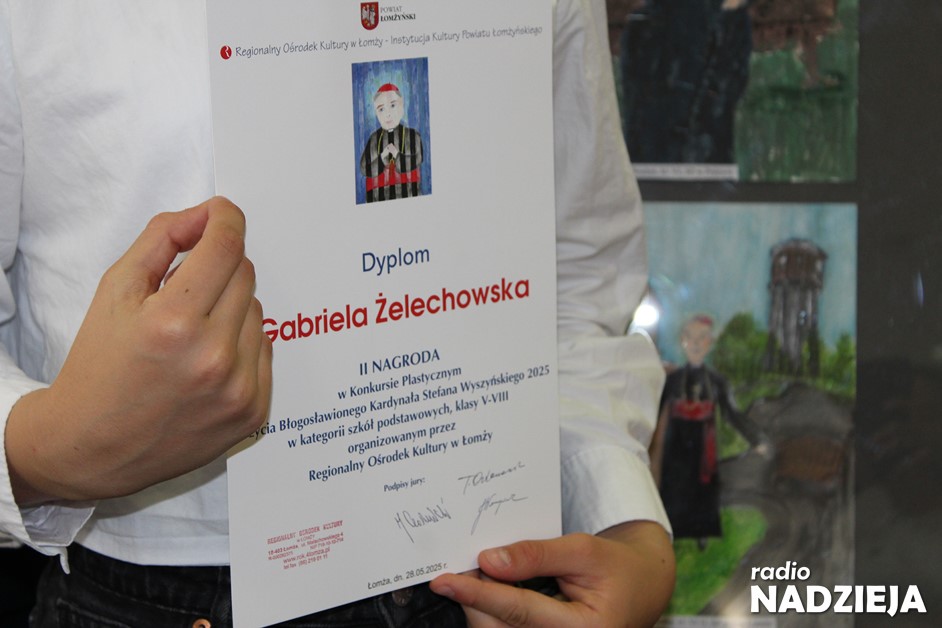 –Konkurs polegał na tym, żeby wykonać pracę twórczą w formacie A4, która przedstawiałaby albo fragmenty z życia błogosławionego kardynała Stefana Wyszyńskiego albo nawiązanie do motta konkursu. Dzieci poradziły sobie bardzo dobrze. Niektóre osoby do nas dzwoniły i pytały w jaki sposób można wyrazić to motto i przedstawić je w pracy. Przewidzieliśmy takie nagrody, które będą rozwijały twórcze zdolności dzieci, czyli materiały plastyczne – mówi Andrzej Żmuda – instruktor z Regionalnego Ośrodka Kultury w Łomży: