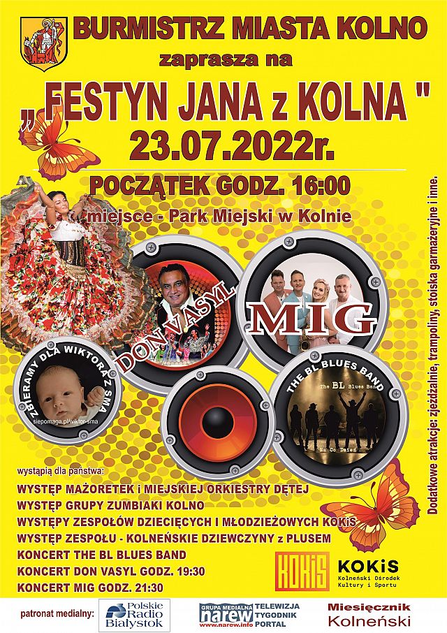 – Zapraszam mieszkańców Kolna i słuchaczy Radia Nadzieja, wszystkich gości na Festyn Jana z Kolna, który odbędzie się 23 lipca w parku miejskim w Kolnie. Początek festynu o godzinie 16. Będzie wiele atrakcji dla dzieci, dla młodzieży, osób starszych, a gwiazdą wieczoru będzie zespół disco-polo MIG. Serdecznie wszystkich zapraszam.