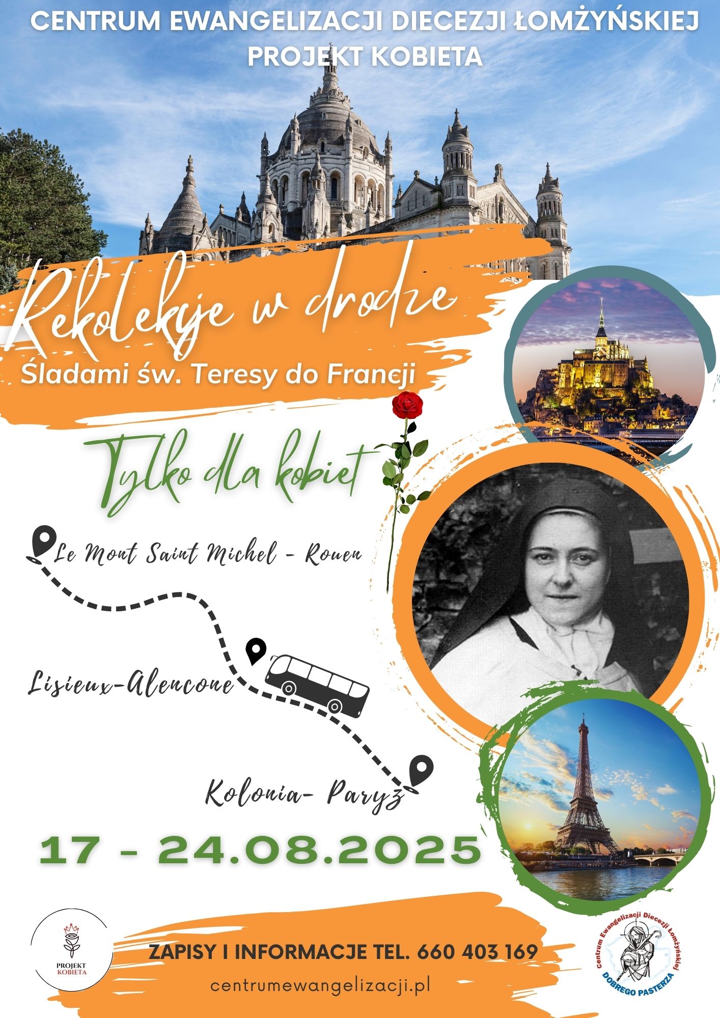 Projekt Kobieta działający przy Centrum Ewangelizacji Dobrego Pasterza organizuje również rekolekcje w drodze – ,,śladami św. Teresy do Francji”: