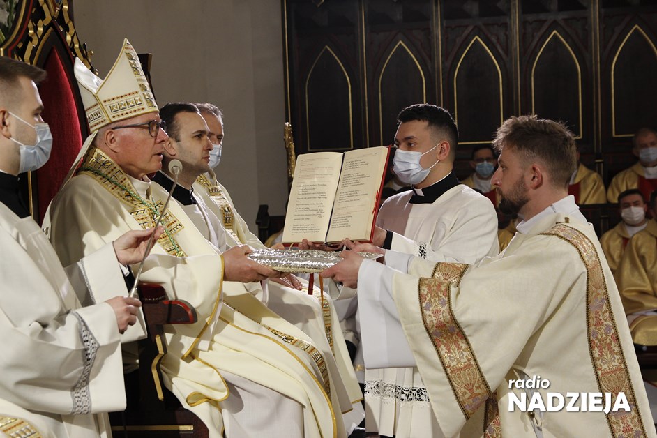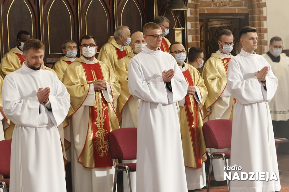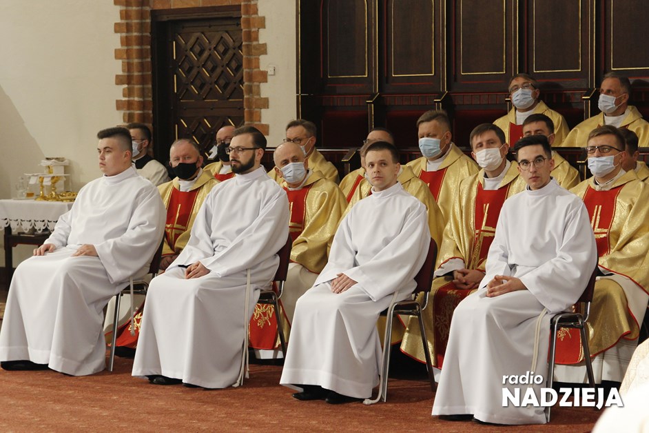 Biskup Janusz swoją homilię rozpoczął od przywołania historii związanej z ustanowieniem posługi diakonów zapisanej w Dziejach Apostolskich. I podobnie jak w historii z pierwszego czytania tak i w katedrze łomżyńskiej biskup powołał siedmiu do posługi. A nawiązując do Ewangelii, w której zebrani usłyszeli o soli biskup łomżyński mówił iż sól odgrywała bardzo ważną rolę i to wezwanie Chrystusa byśmy byli solą ziemi nie odnosi się tylko do diakonów, kapłanów czy biskupów, ale do wszystkich.