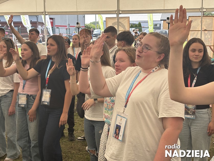Spotkanie tradycyjnie rozpoczęło się na polu festiwalowym, z którego popołudniu wszyscy udali się do kościoła parafialnego na Mszę Świętą pod przewodnictwem ks. bp. Janusza Stepnowskiego.