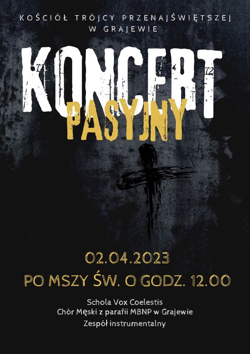 W niedzielę w kościele pw. Trójcy Przenajświętszej w Grajewie wystąpią Schola Vox Coelestis, instrumentaliści oraz Chór Męski z parafii Matki Bożej Nieustającej Pomocy. To z okazji organizowanego przez obie parafie koncertu pasyjnego.