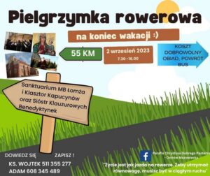 Więcej informacji o pielgrzymce jest dostępnych na Facebooku Parafii. Pielgrzymka wyruszy po Mszy Świętej o godzinie 7.30 (w sobotę 2 września) spod Parafii Chrystusa Dobrego Pasterza w Ostrowi Mazowieckiej.