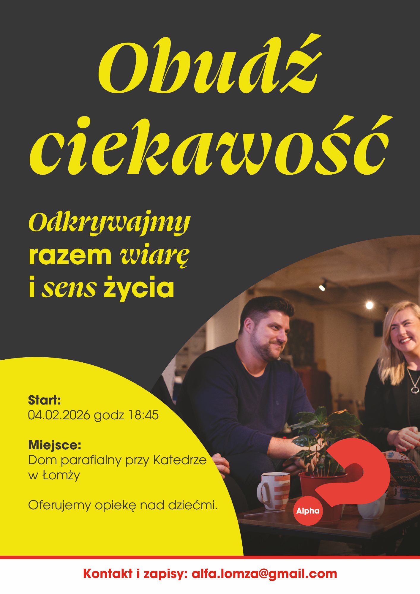 Już w lutym w Łomży rusza kolejna edycja kursu Alpha, czyli spotkań dla wszystkich, którzy chcą zatrzymać się na chwilę i poszukać odpowiedzi na ważne pytania o wiarę i sens życia.