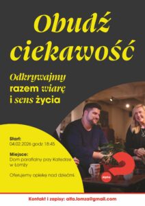 Pierwsze spotkanie odbędzie się w środę (04.02) o godzinie 18:45 w domu parafialnym przy Katedrze w Łomży. – Chcemy razem odkrywać wiarę, ale przede wszystkim spotkać drugiego człowieka – mówi ksiądz Grzegorz Kierski, wikariusz łomżyńskiej katedry.