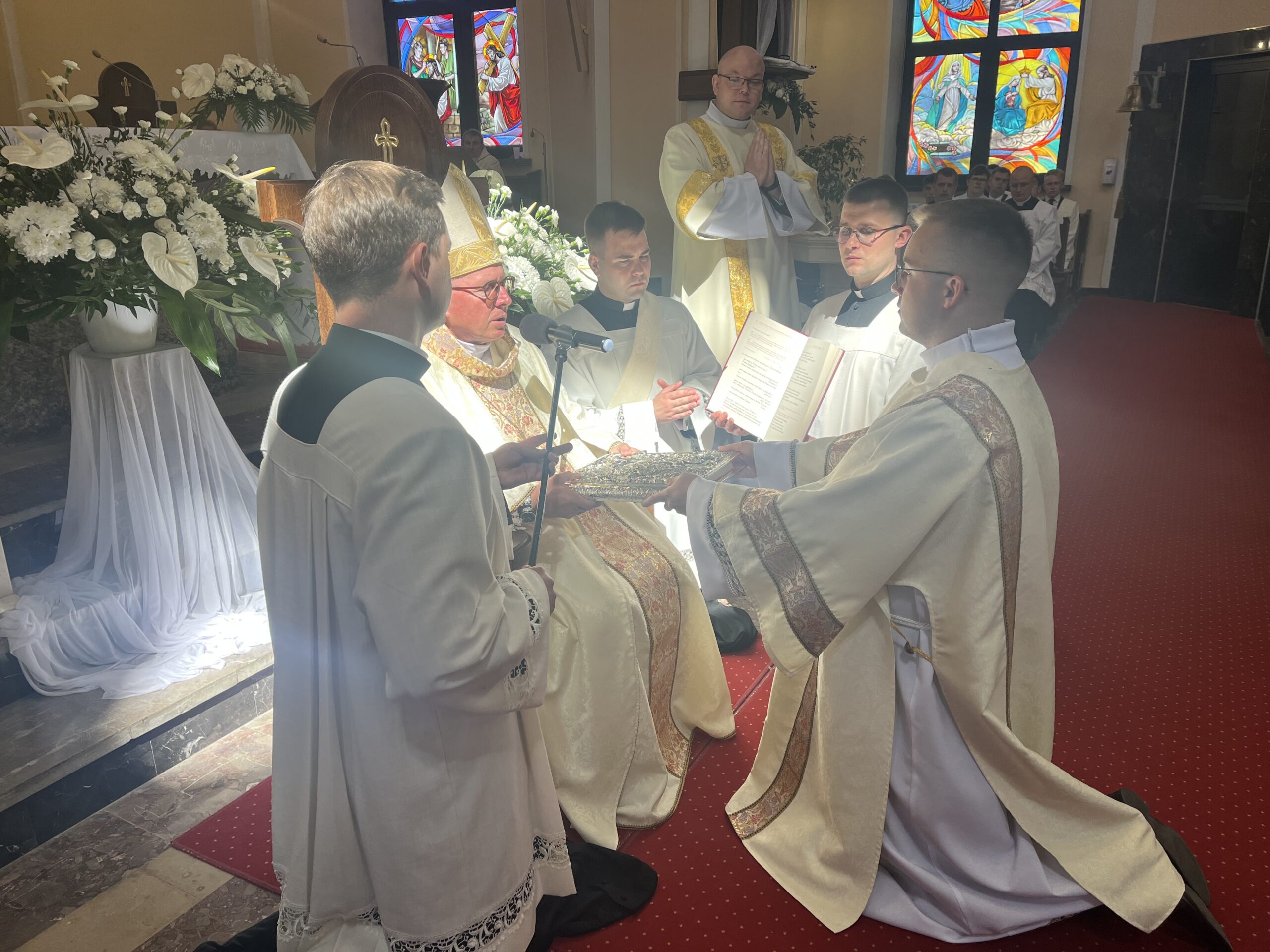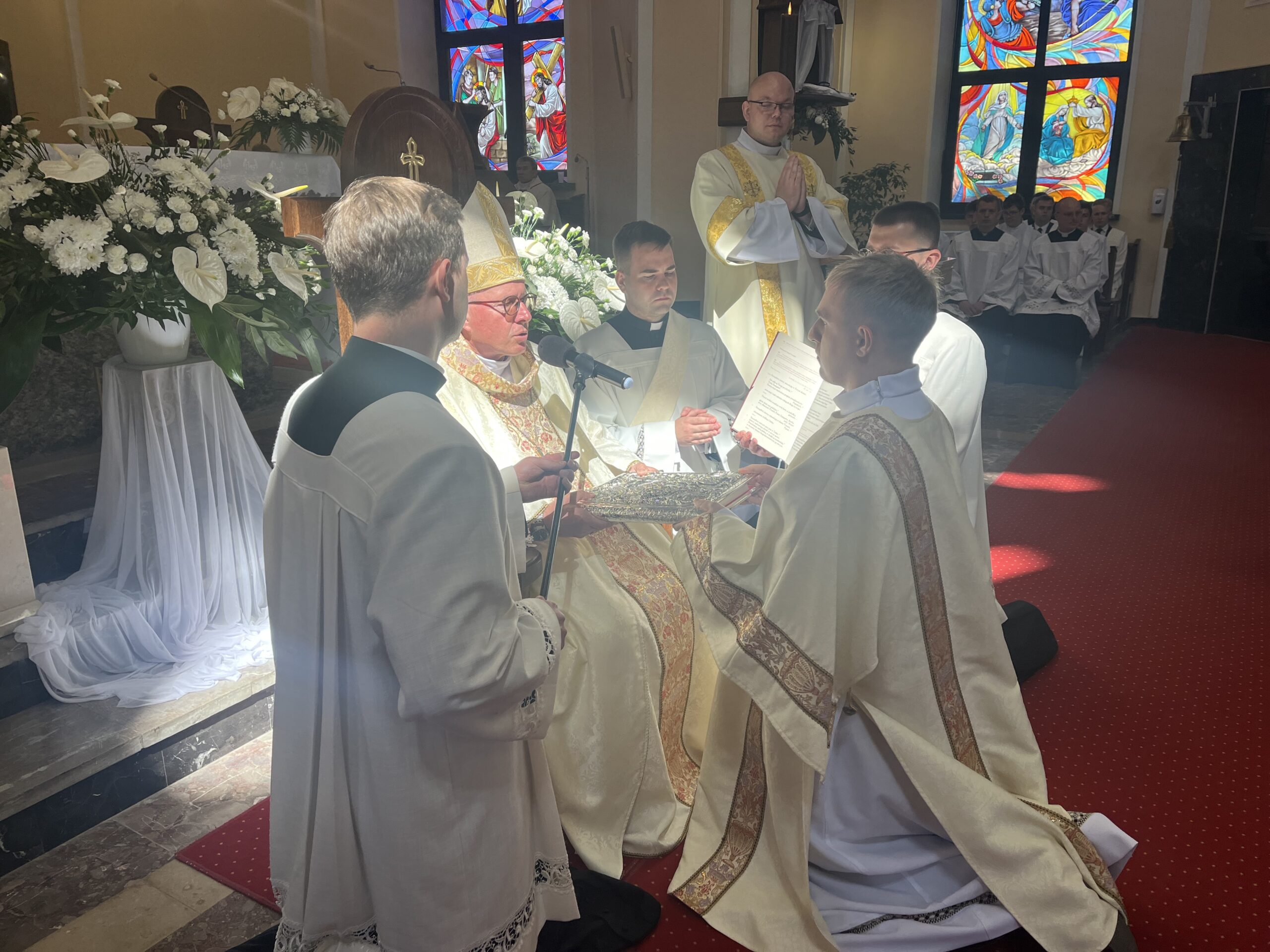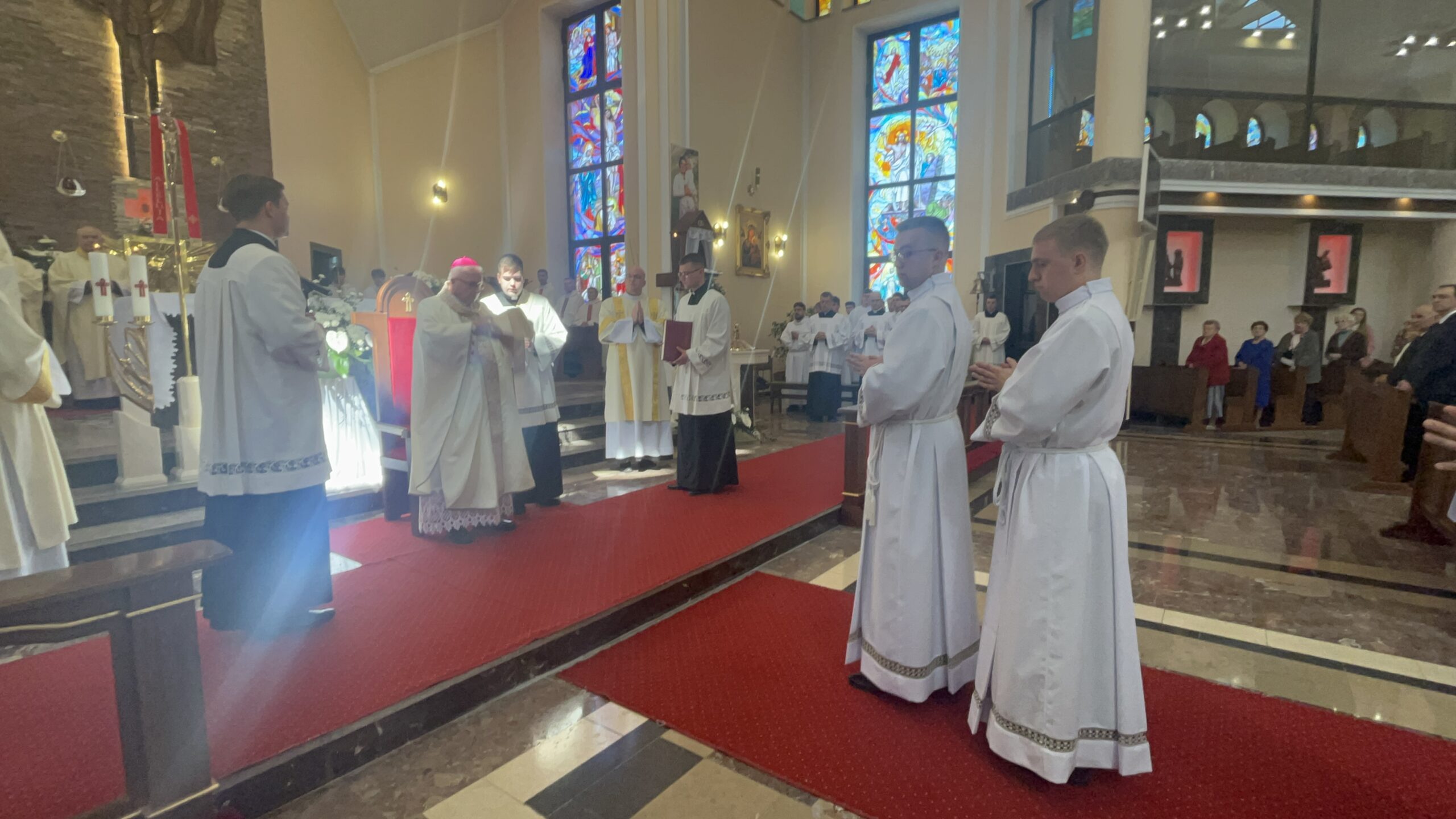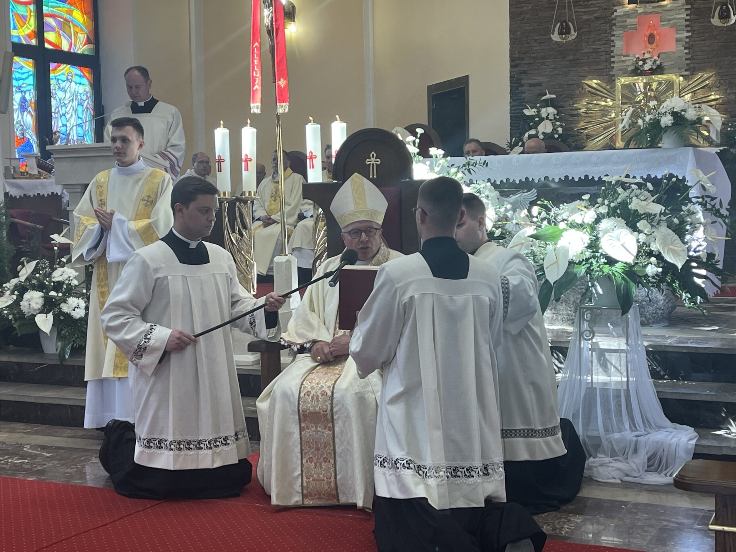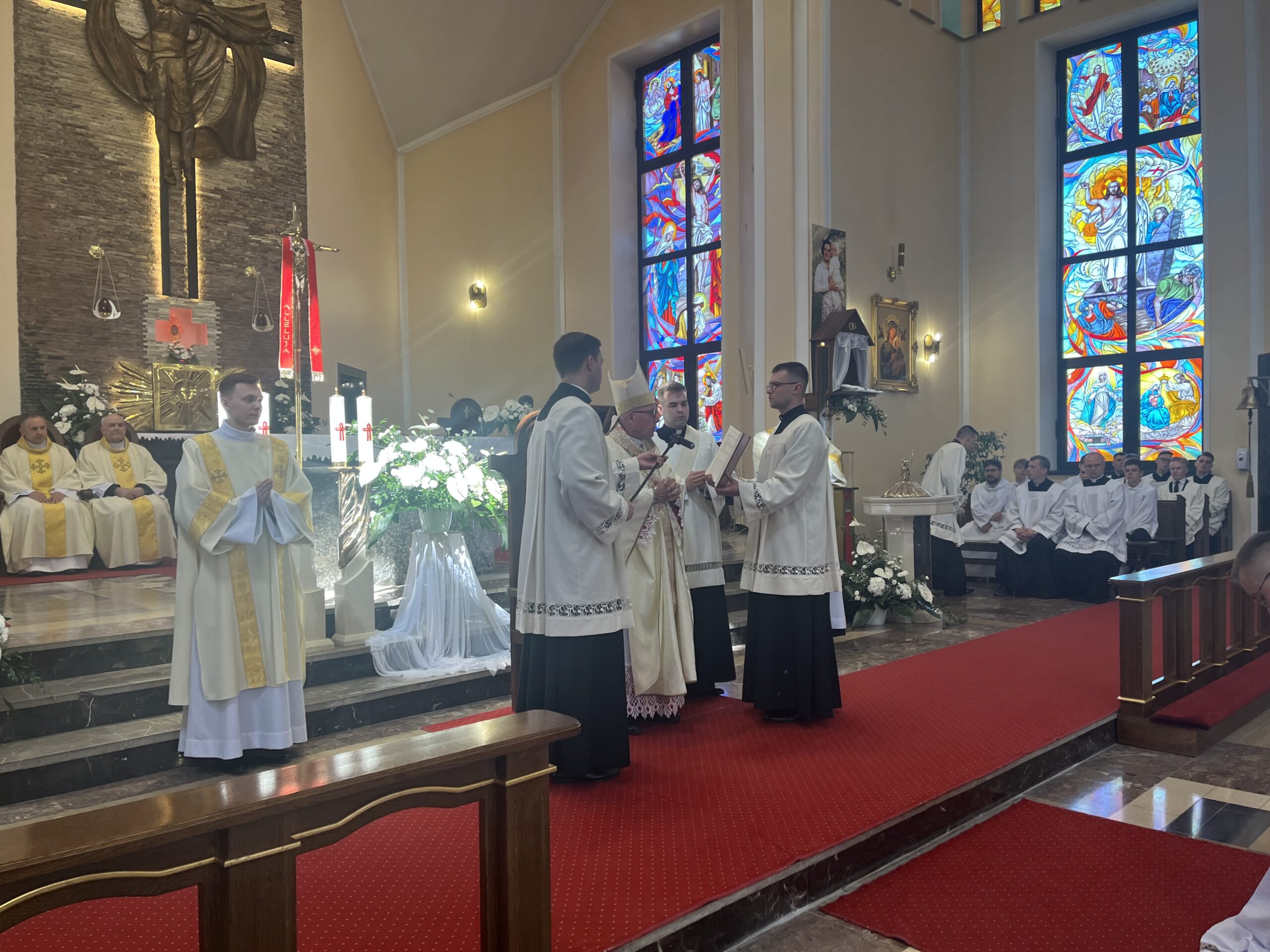 Eucharystii przewodniczył ks. bp Janusz Stepnowski, ordynariusz diecezji łomżyńskiej, wraz z ks. bpem Tadeuszem Bronakowskim oraz licznie zgromadzonym duchowieństwem. Kościół został zapełniony najbliższą rodziną i przyjaciółmi alumnów przyjmujących święcenia. O przebieg liturgii zadbał ceremoniarz diecezjalny ks. dr Krzysztof Chodkowski, a o piękno śpiewu chór seminaryjny połączony z chórem parafialnym pod batutą ks. dr Kazimierza Ostrowskiego wraz ze wsparciem dwóch organistów.
