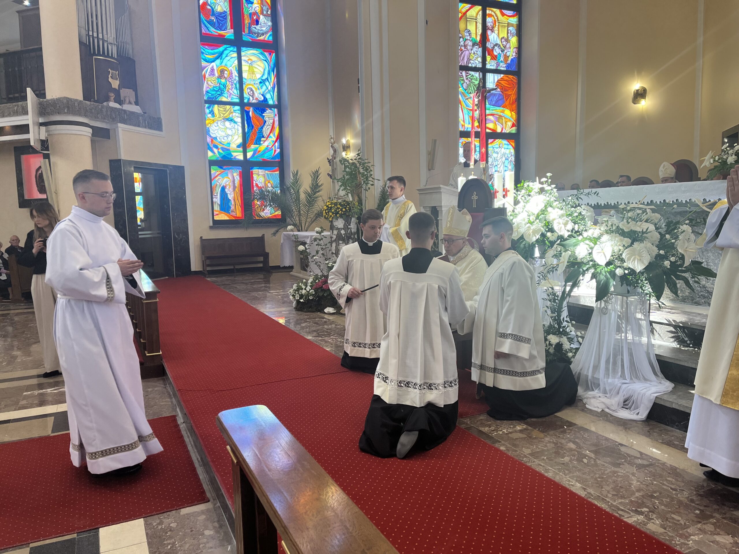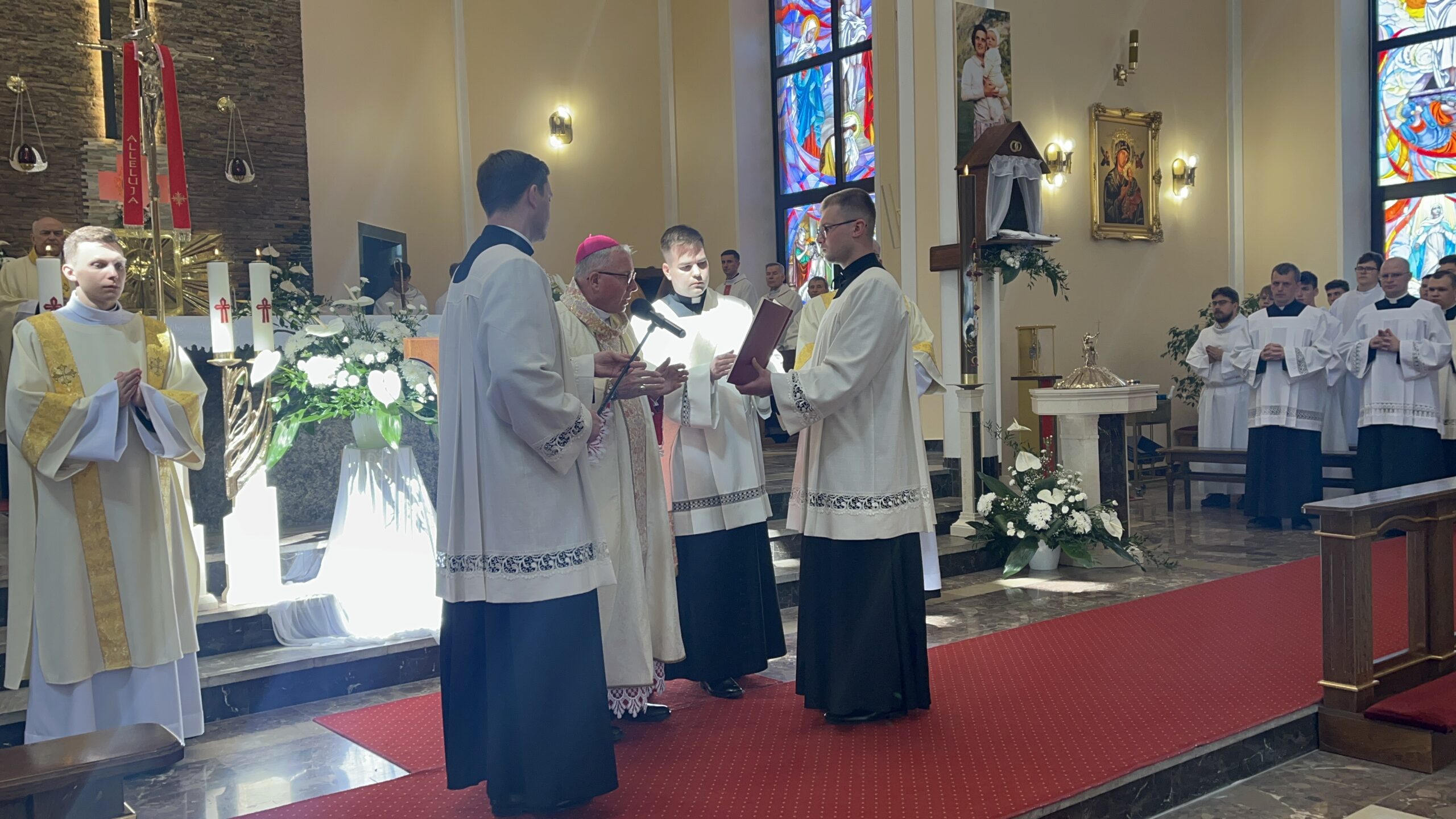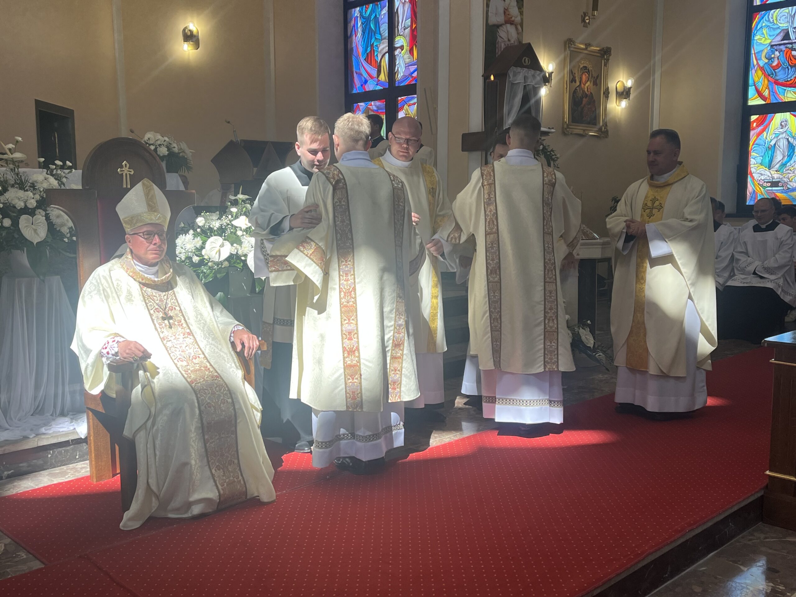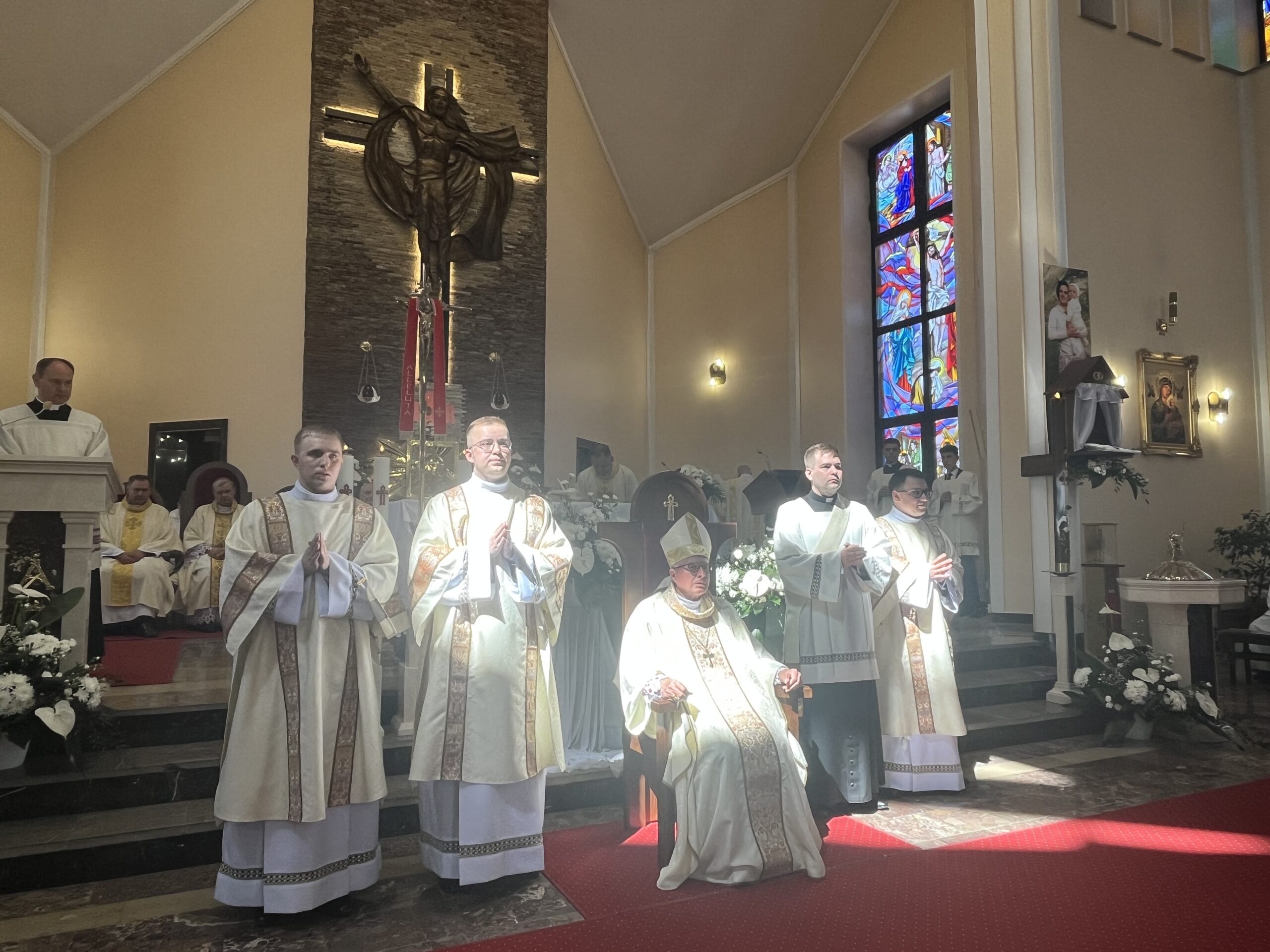 Eucharystii przewodniczył ks. bp Janusz Stepnowski, ordynariusz diecezji łomżyńskiej, wraz z ks. bpem Tadeuszem Bronakowskim oraz licznie zgromadzonym duchowieństwem. Kościół został zapełniony najbliższą rodziną i przyjaciółmi alumnów przyjmujących święcenia. O przebieg liturgii zadbał ceremoniarz diecezjalny ks. dr Krzysztof Chodkowski, a o piękno śpiewu chór seminaryjny połączony z chórem parafialnym pod batutą ks. dr Kazimierza Ostrowskiego wraz ze wsparciem dwóch organistów.