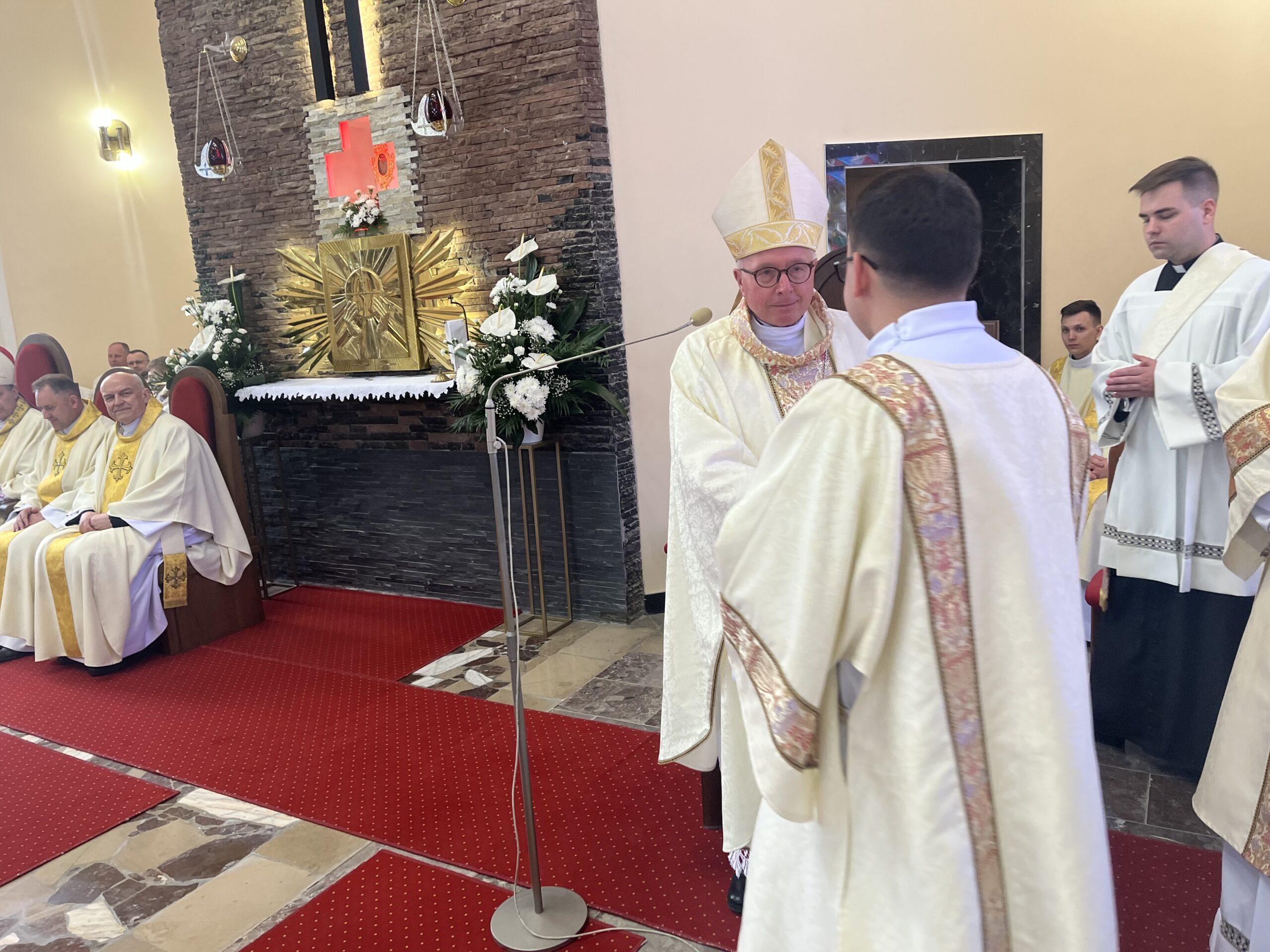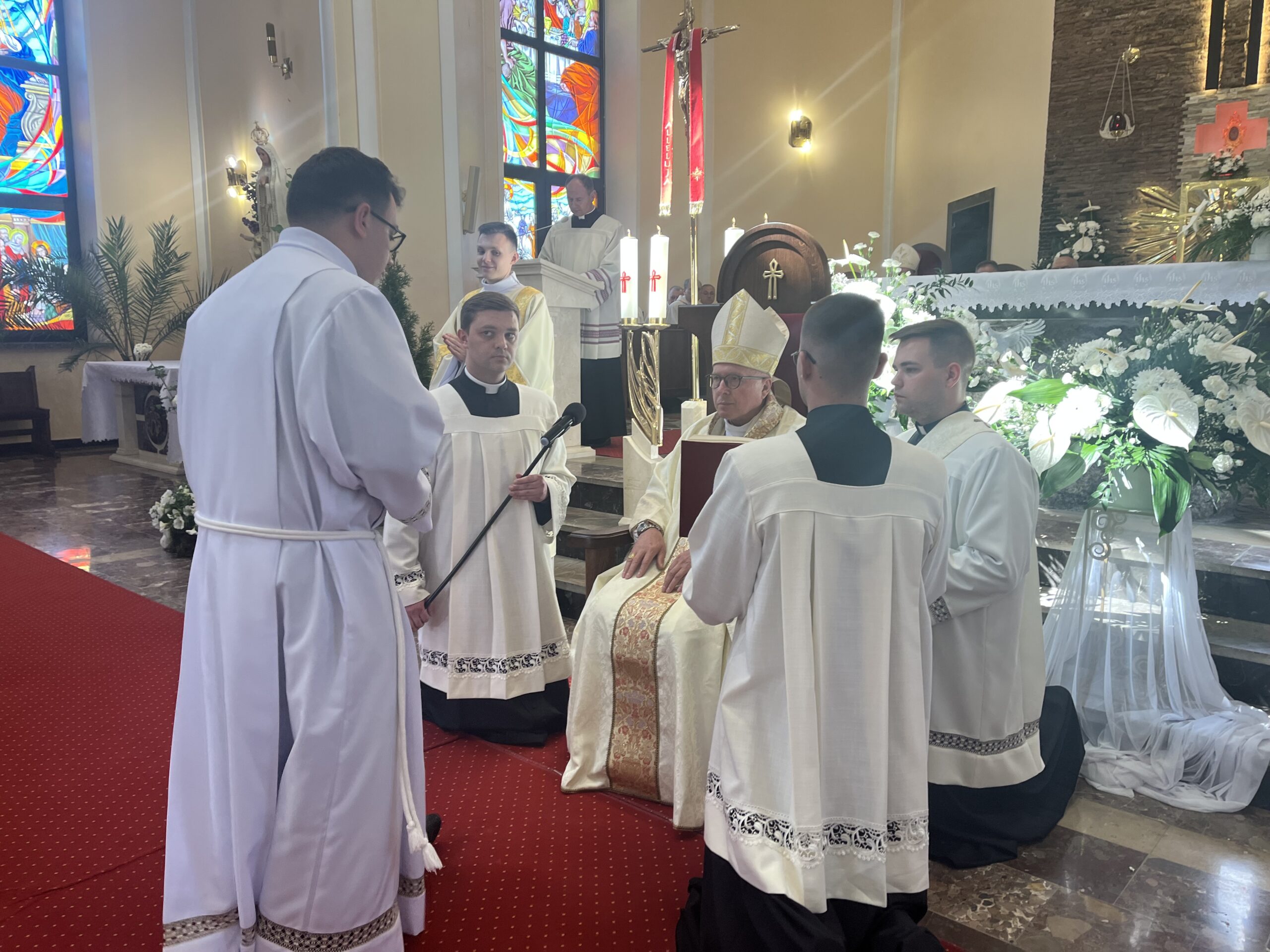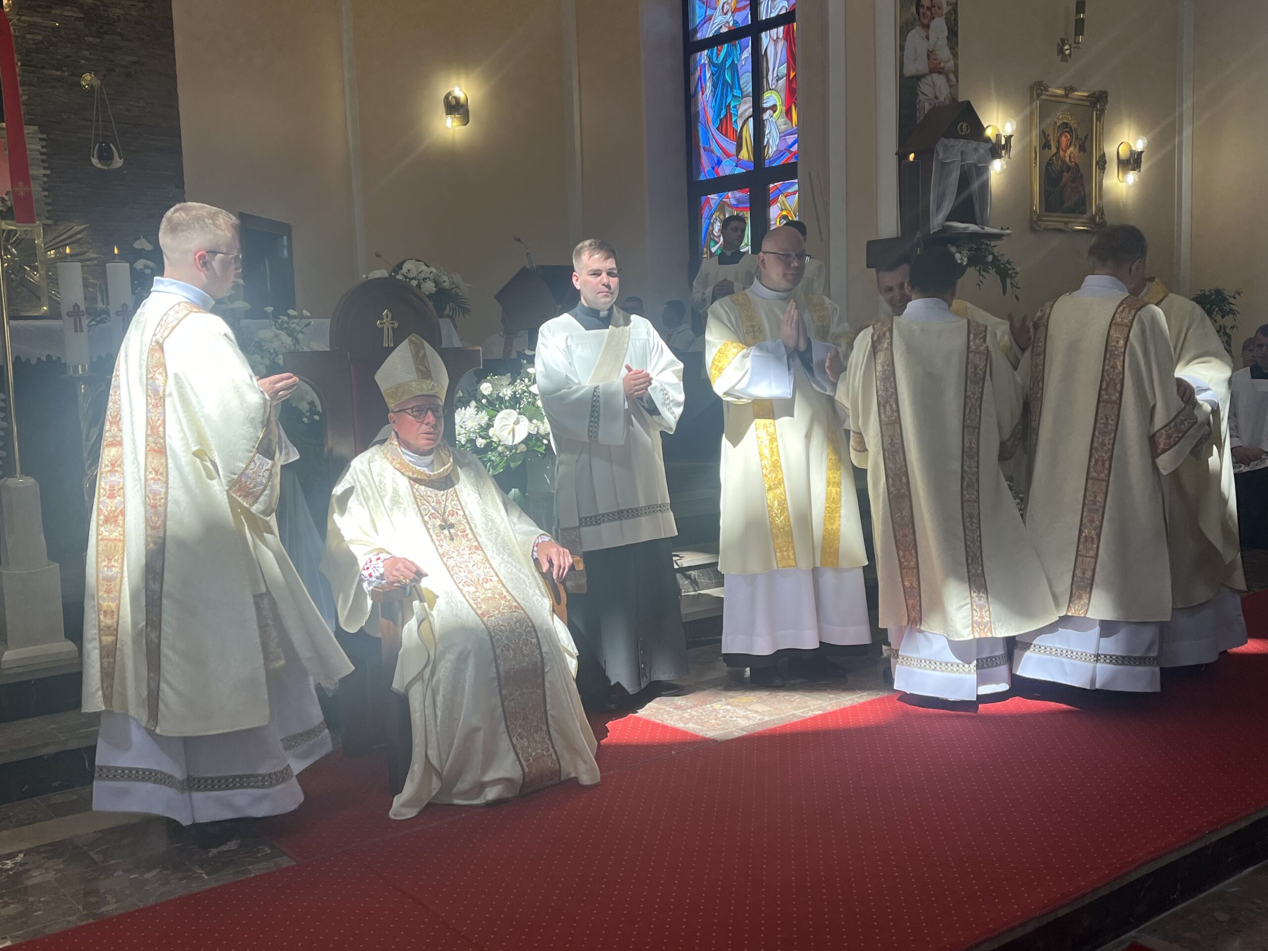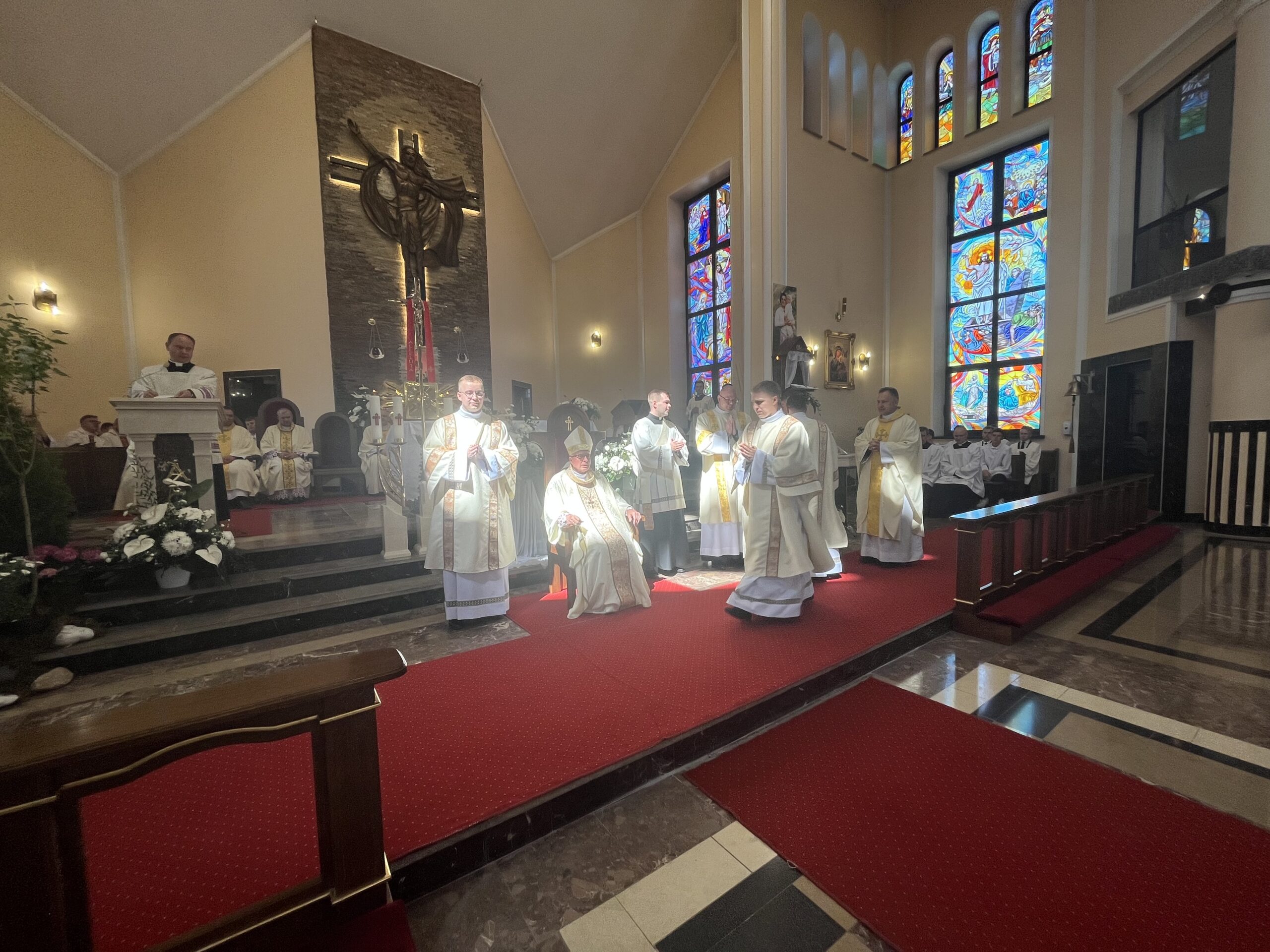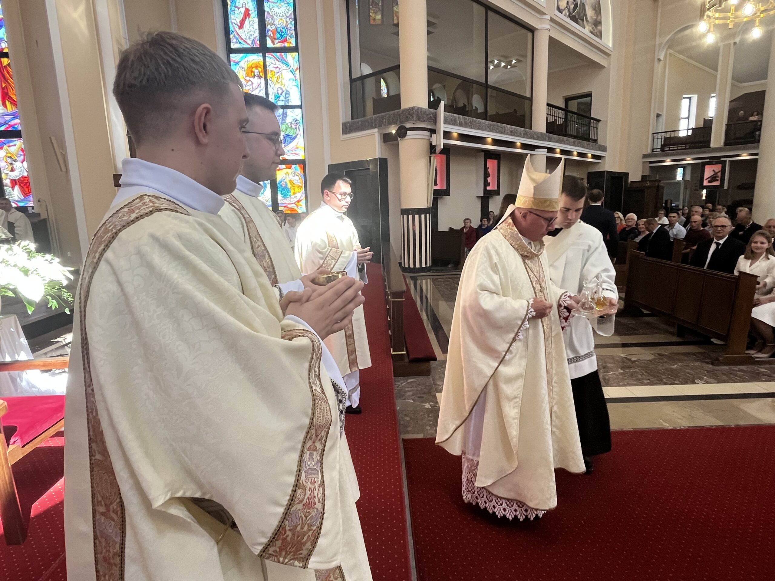 Eucharystii przewodniczył ks. bp Janusz Stepnowski, ordynariusz diecezji łomżyńskiej, wraz z ks. bpem Tadeuszem Bronakowskim oraz licznie zgromadzonym duchowieństwem. Kościół został zapełniony najbliższą rodziną i przyjaciółmi alumnów przyjmujących święcenia. O przebieg liturgii zadbał ceremoniarz diecezjalny ks. dr Krzysztof Chodkowski, a o piękno śpiewu chór seminaryjny połączony z chórem parafialnym pod batutą ks. dr Kazimierza Ostrowskiego wraz ze wsparciem dwóch organistów.