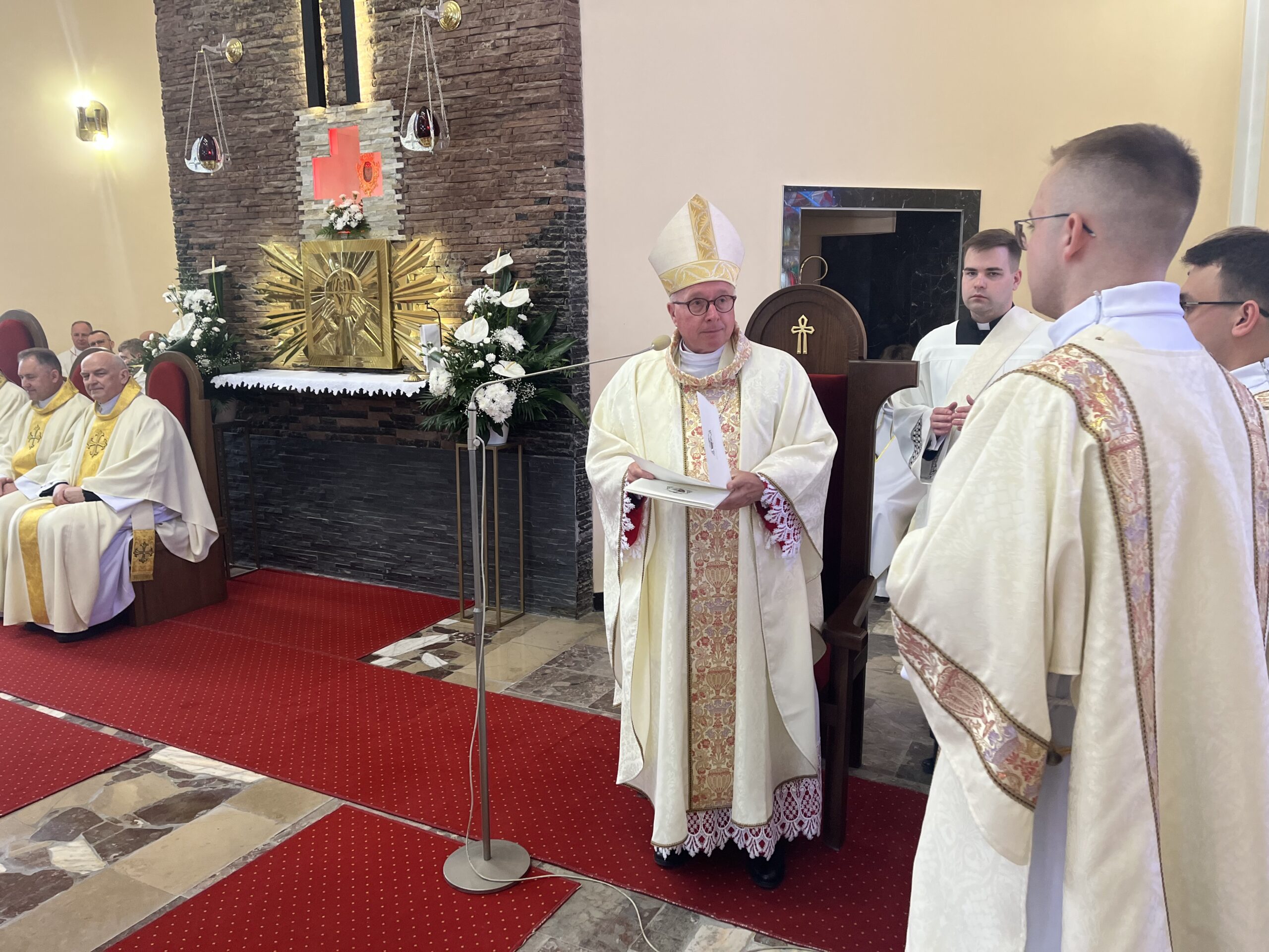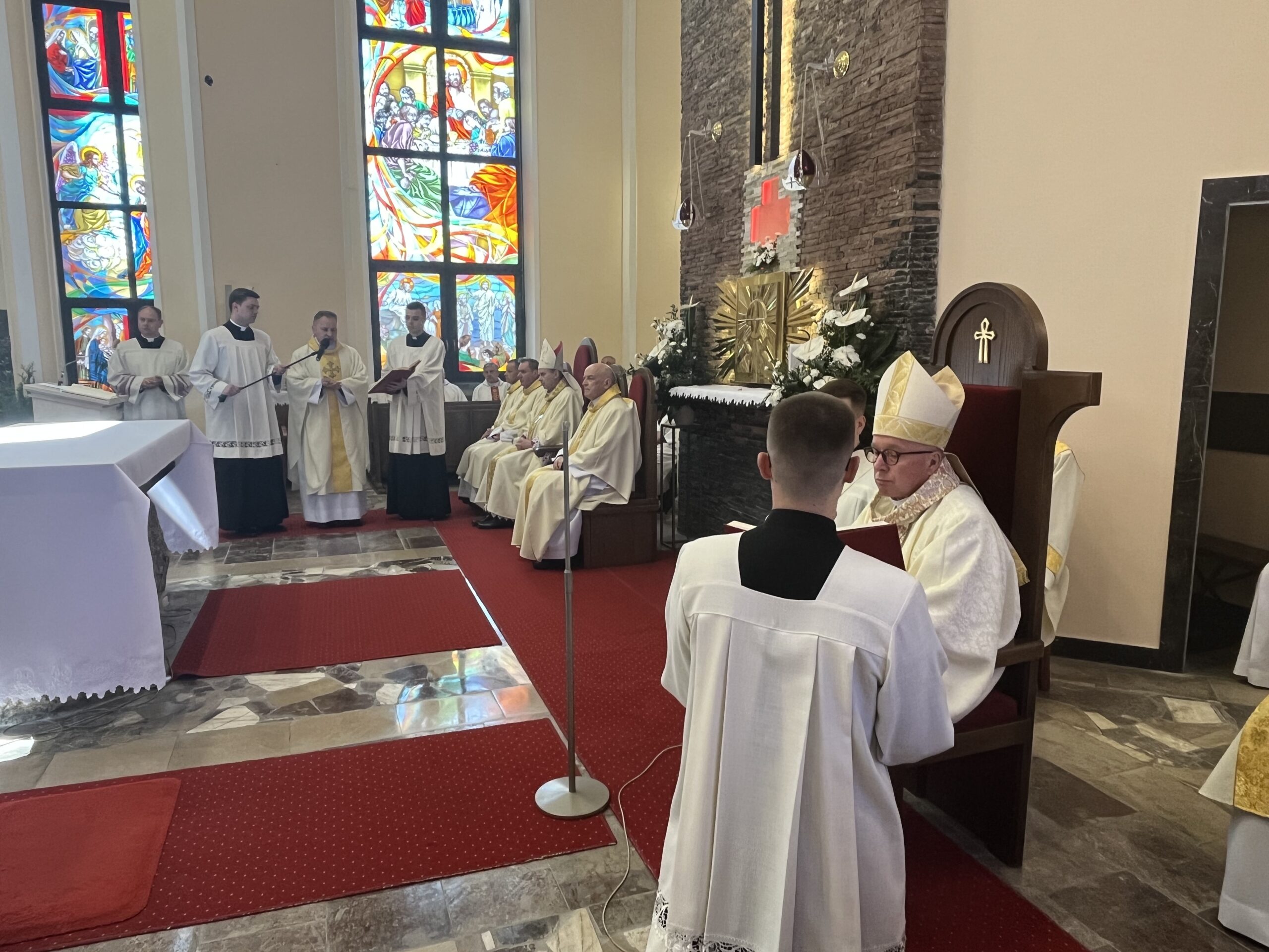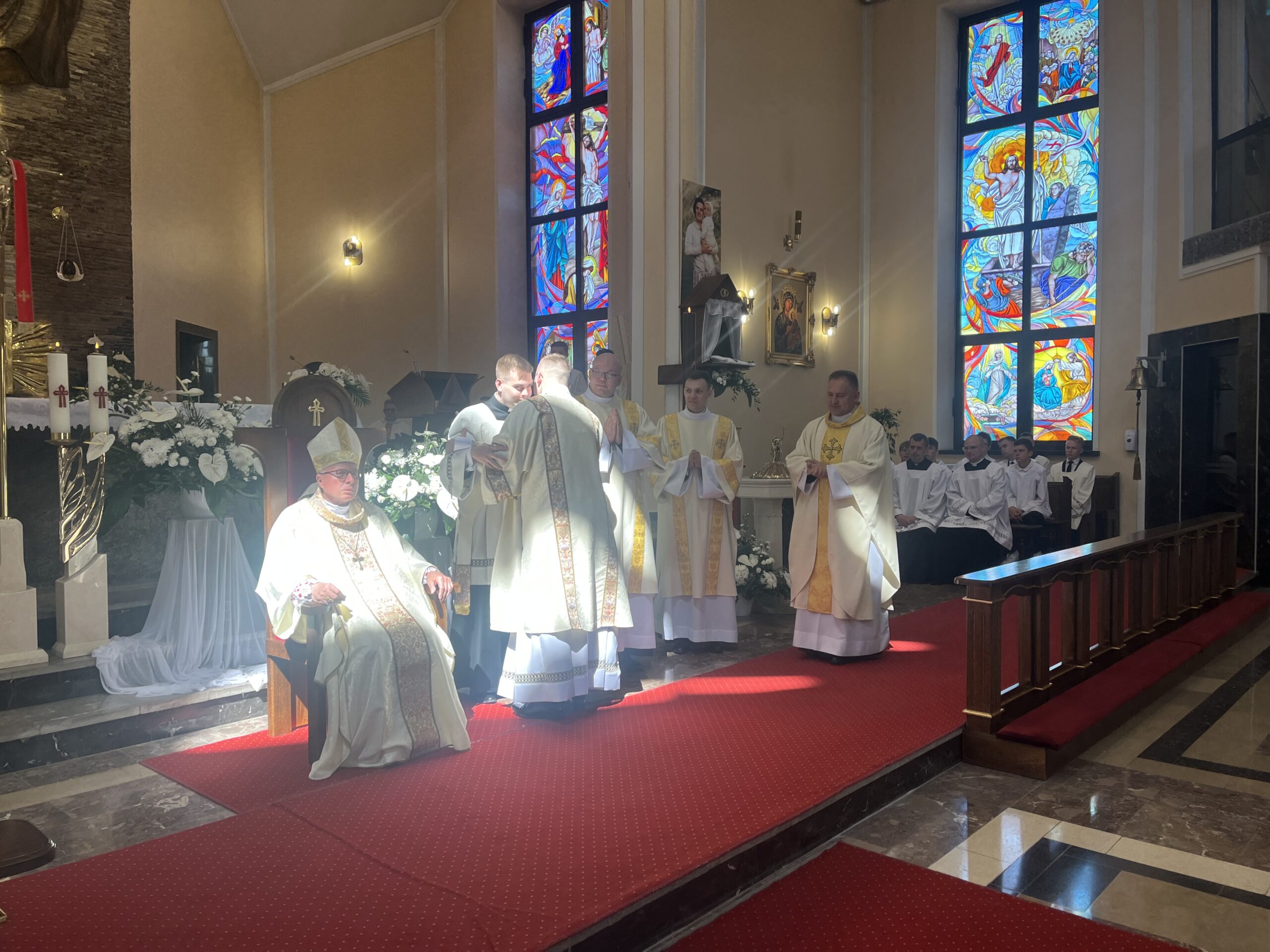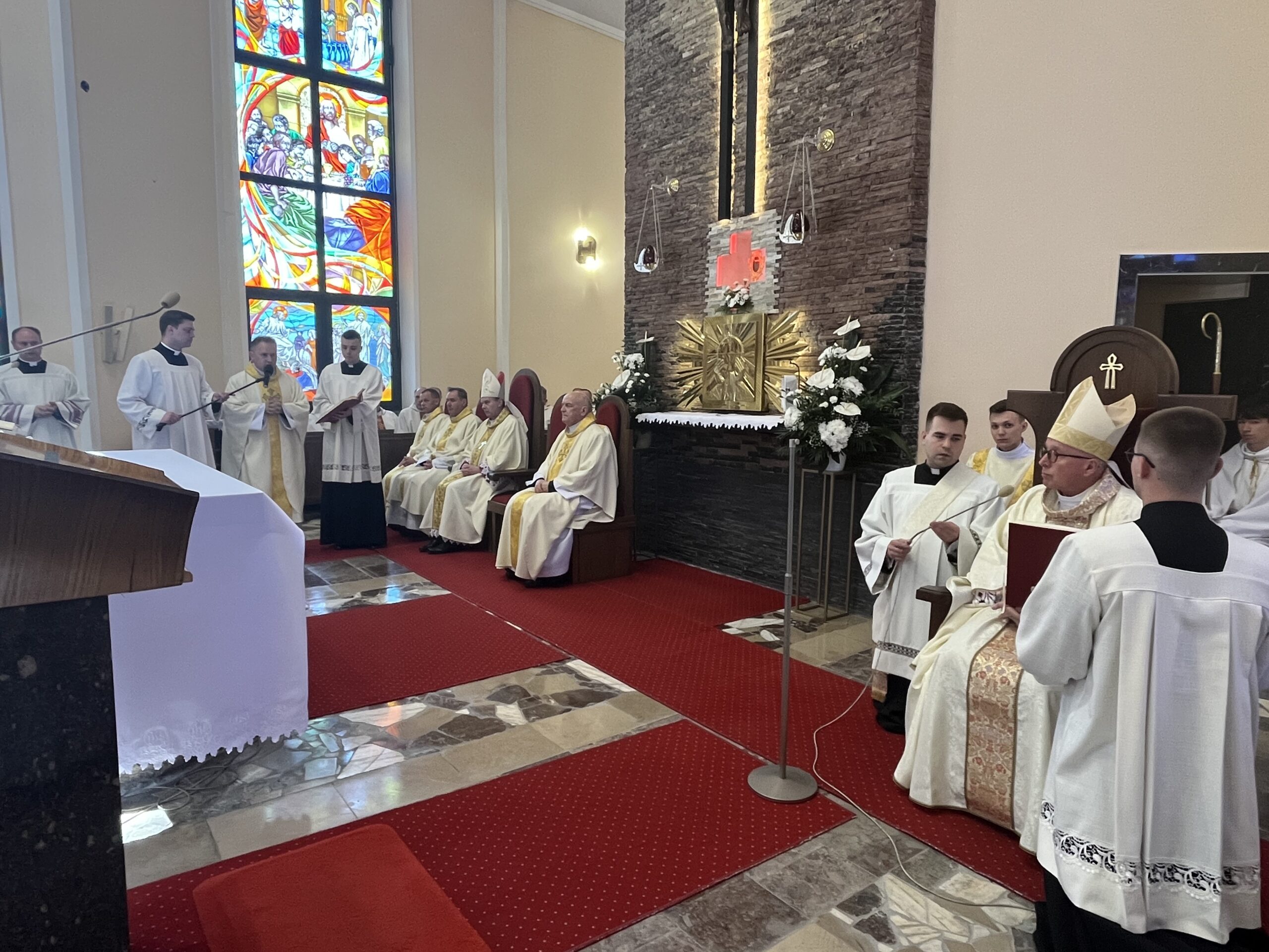 Eucharystii przewodniczył ks. bp Janusz Stepnowski, ordynariusz diecezji łomżyńskiej, wraz z ks. bpem Tadeuszem Bronakowskim oraz licznie zgromadzonym duchowieństwem. Kościół został zapełniony najbliższą rodziną i przyjaciółmi alumnów przyjmujących święcenia. O przebieg liturgii zadbał ceremoniarz diecezjalny ks. dr Krzysztof Chodkowski, a o piękno śpiewu chór seminaryjny połączony z chórem parafialnym pod batutą ks. dr Kazimierza Ostrowskiego wraz ze wsparciem dwóch organistów.