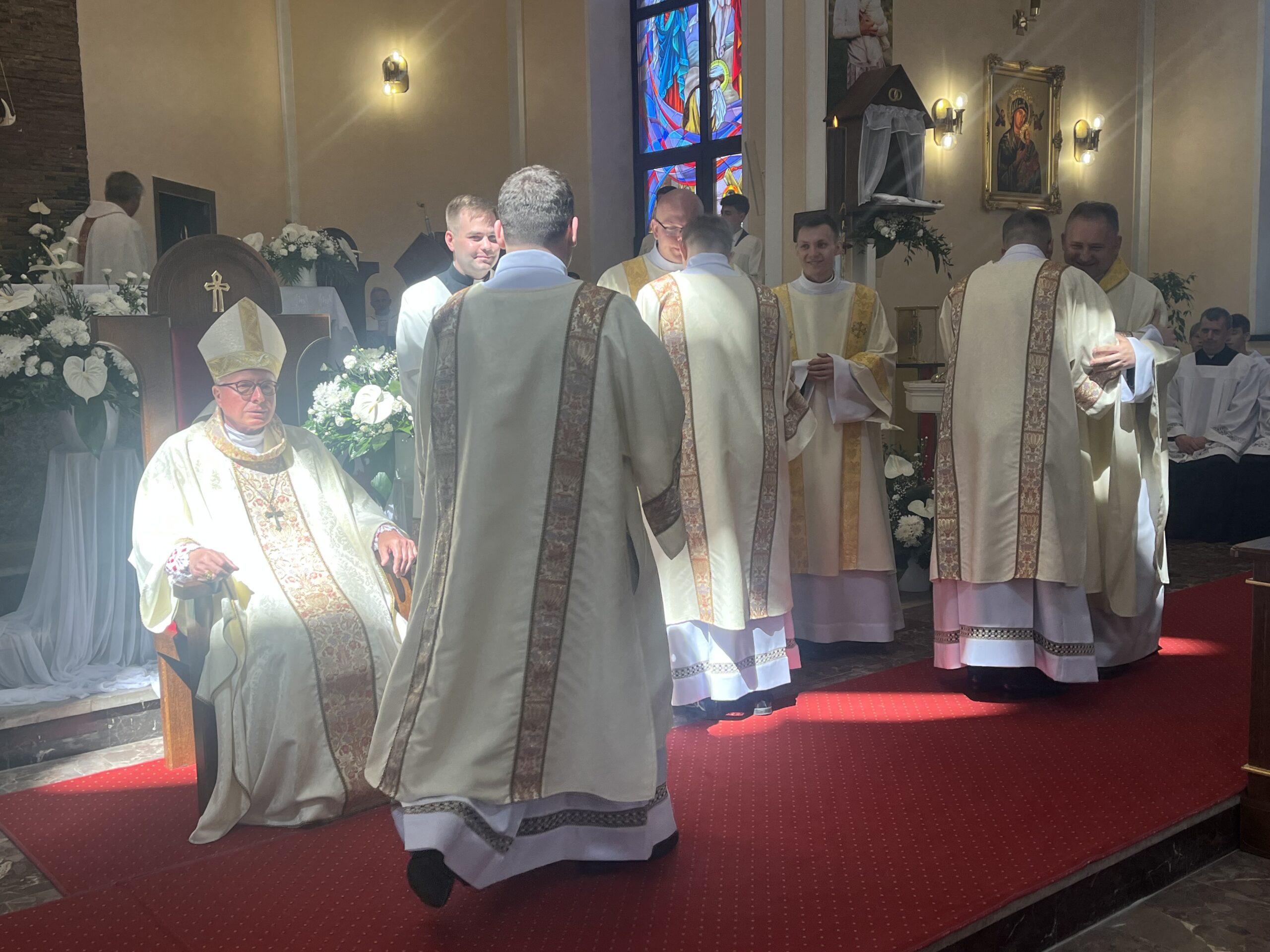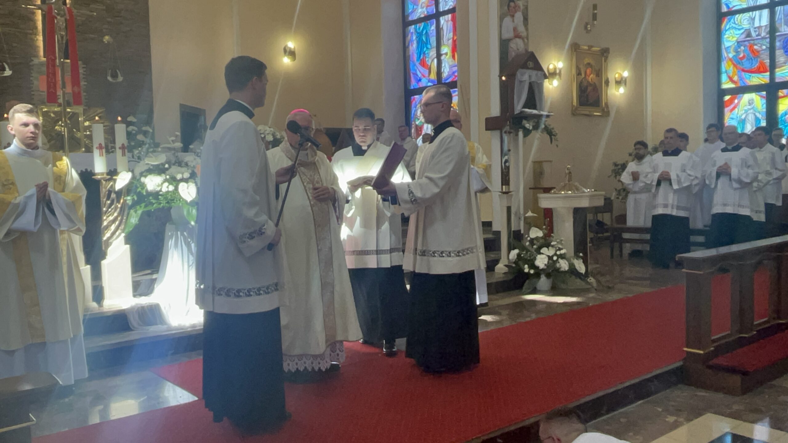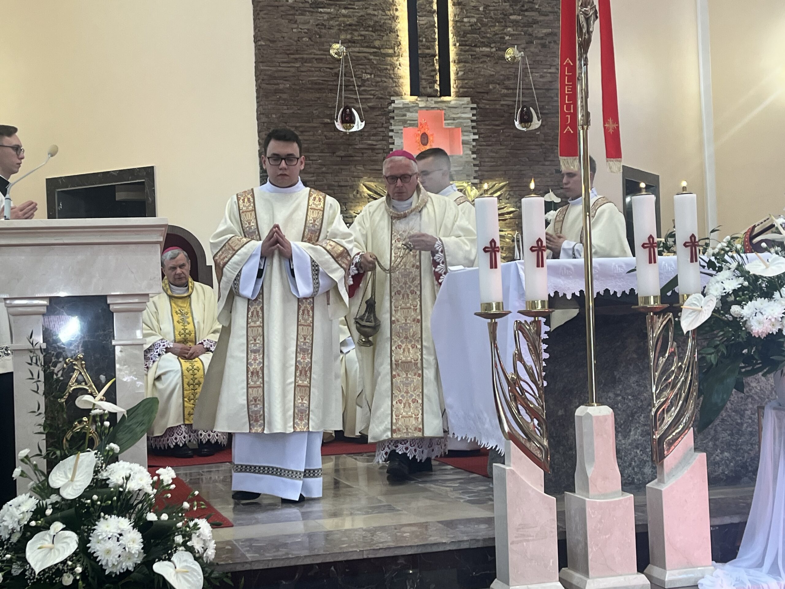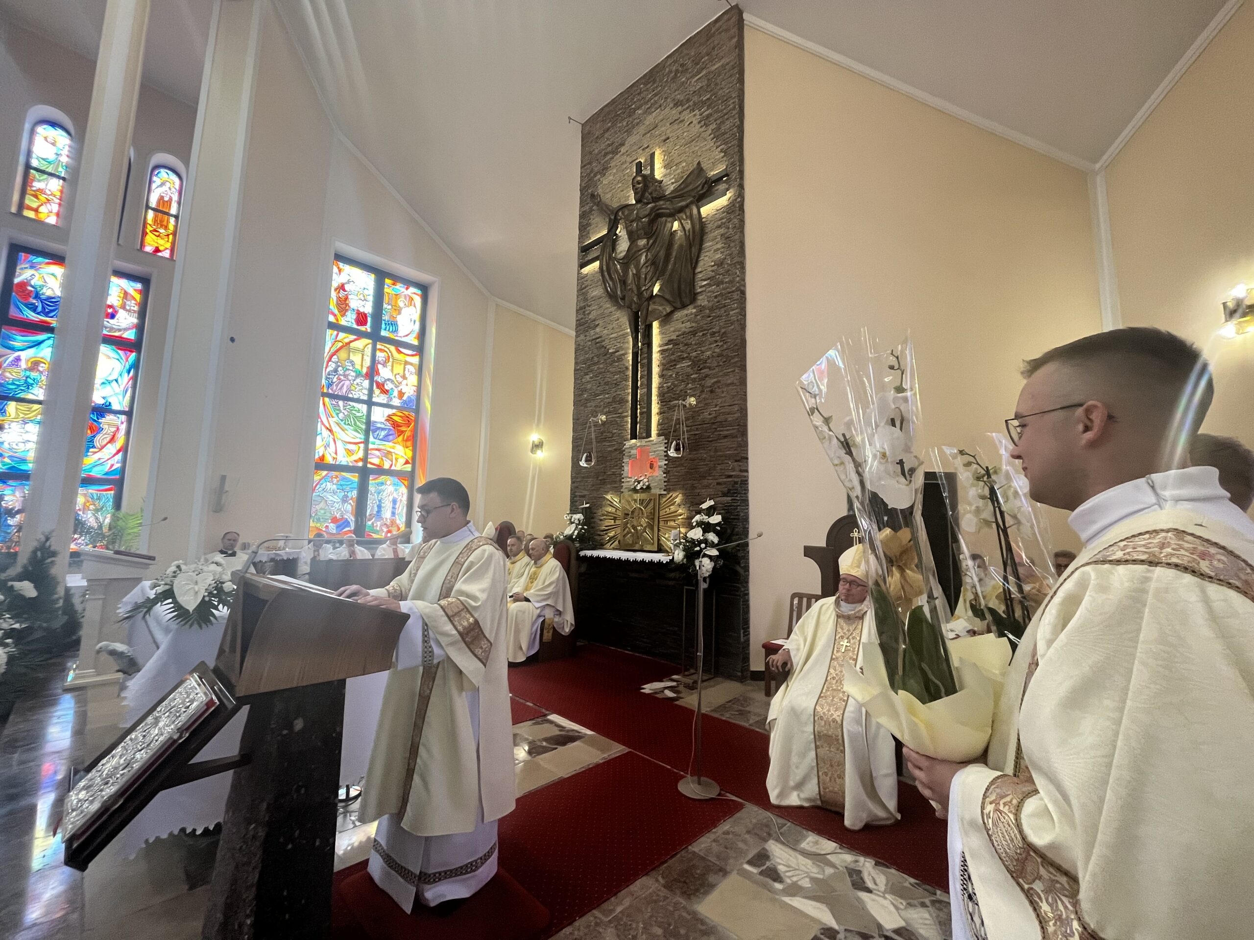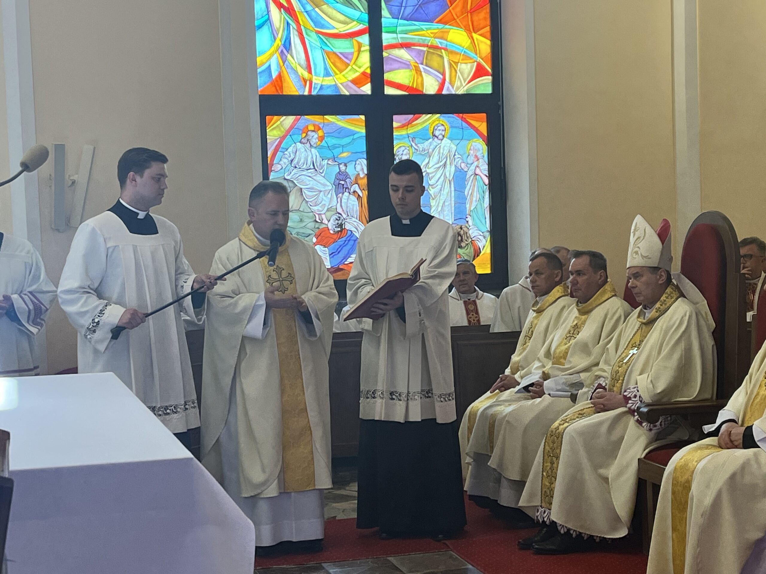 Eucharystii przewodniczył ks. bp Janusz Stepnowski, ordynariusz diecezji łomżyńskiej, wraz z ks. bpem Tadeuszem Bronakowskim oraz licznie zgromadzonym duchowieństwem. Kościół został zapełniony najbliższą rodziną i przyjaciółmi alumnów przyjmujących święcenia. O przebieg liturgii zadbał ceremoniarz diecezjalny ks. dr Krzysztof Chodkowski, a o piękno śpiewu chór seminaryjny połączony z chórem parafialnym pod batutą ks. dr Kazimierza Ostrowskiego wraz ze wsparciem dwóch organistów.