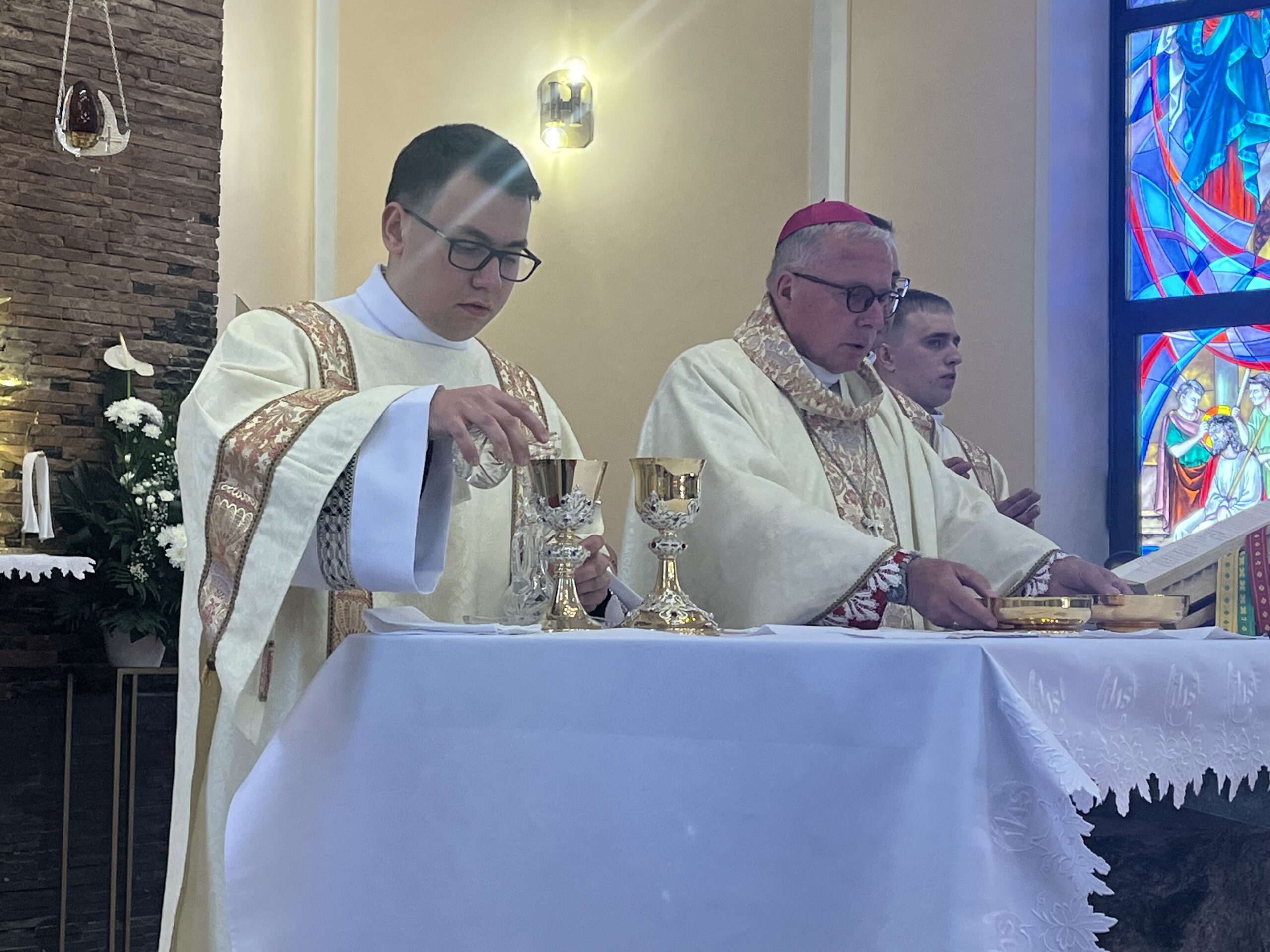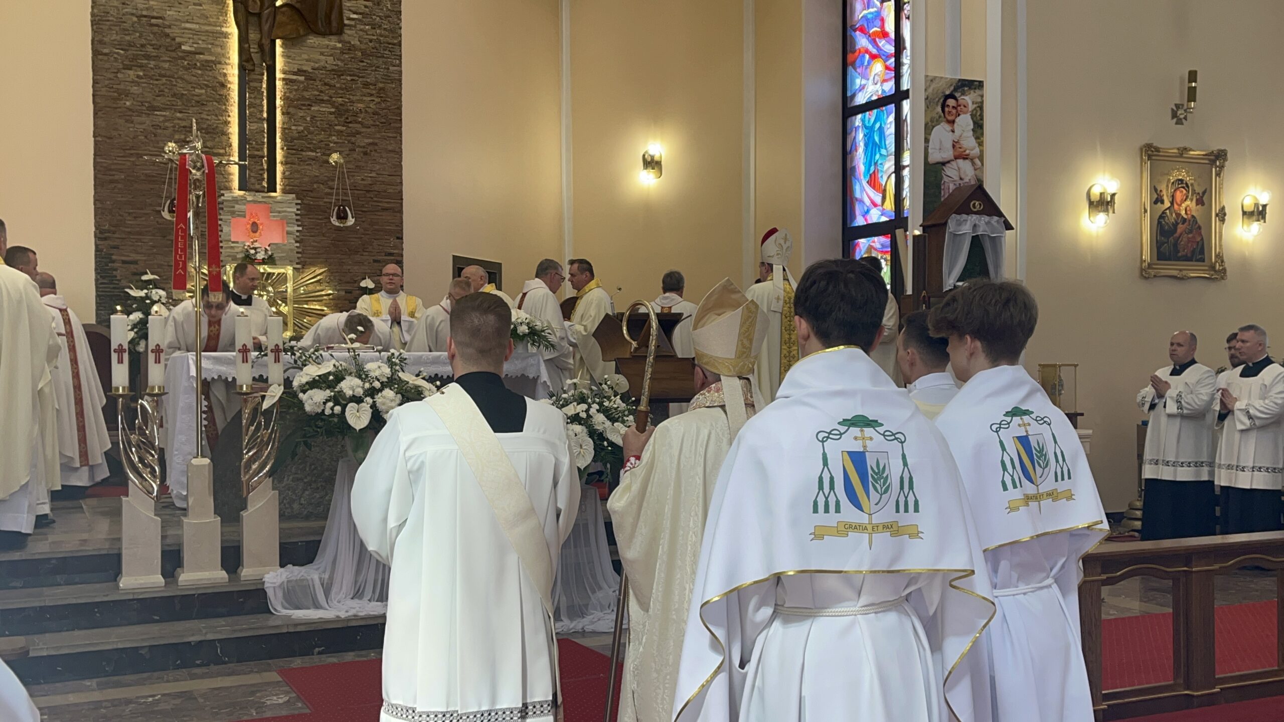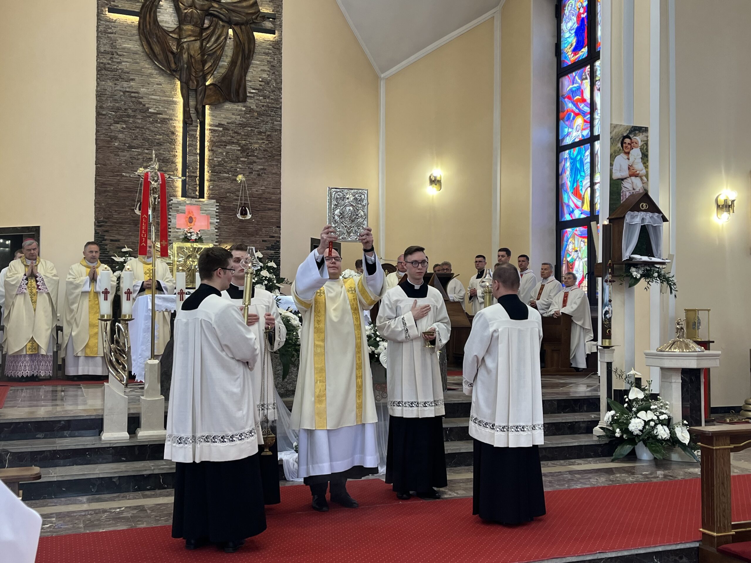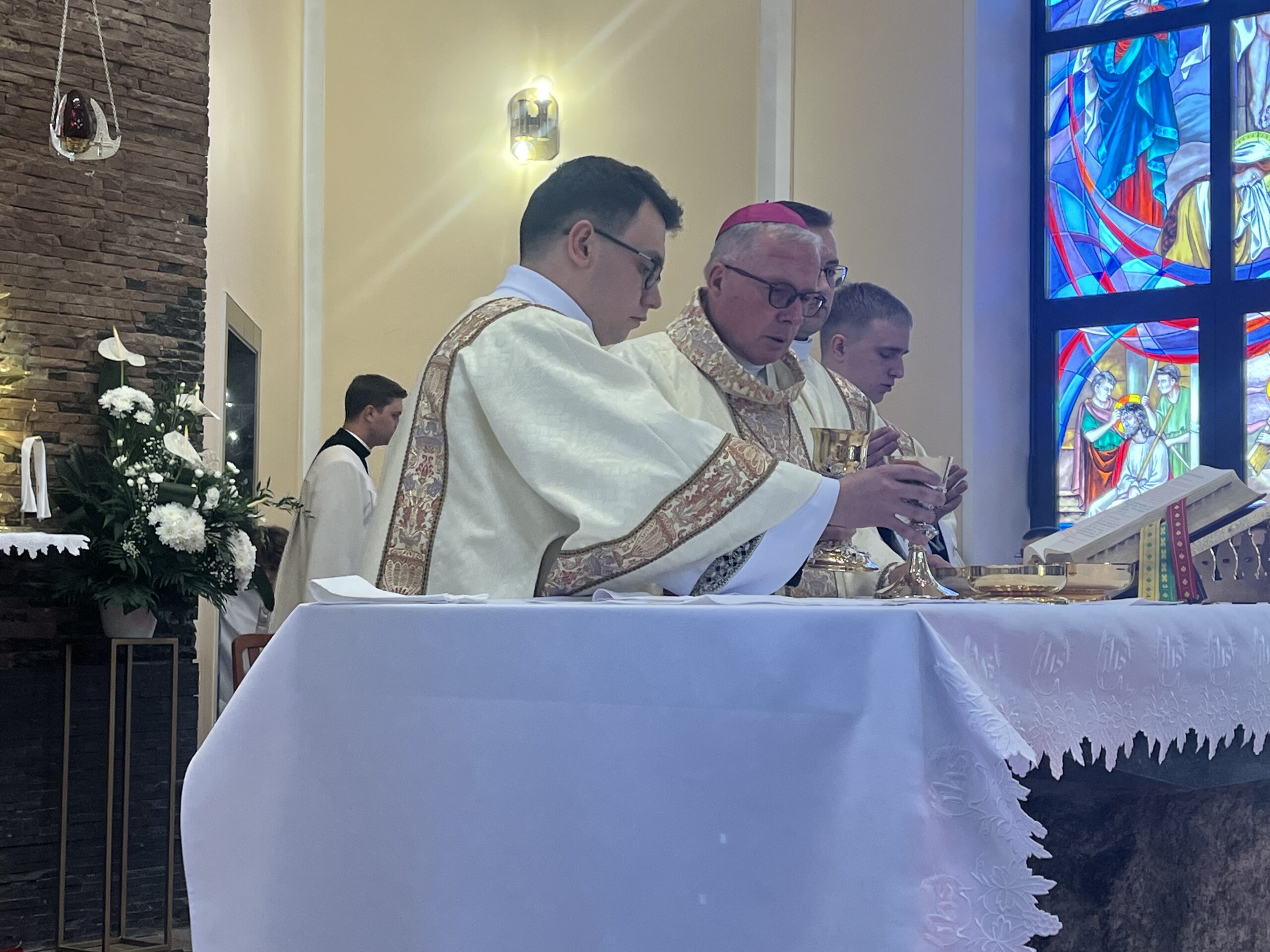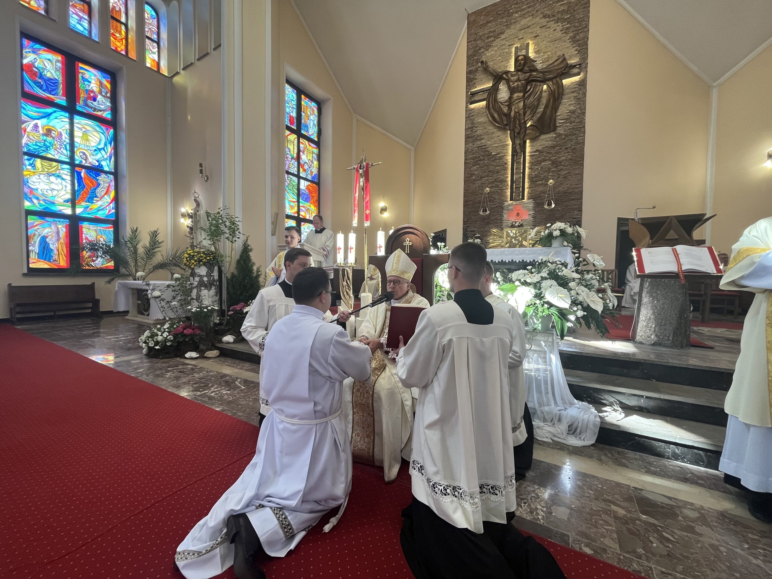 Eucharystii przewodniczył ks. bp Janusz Stepnowski, ordynariusz diecezji łomżyńskiej, wraz z ks. bpem Tadeuszem Bronakowskim oraz licznie zgromadzonym duchowieństwem. Kościół został zapełniony najbliższą rodziną i przyjaciółmi alumnów przyjmujących święcenia. O przebieg liturgii zadbał ceremoniarz diecezjalny ks. dr Krzysztof Chodkowski, a o piękno śpiewu chór seminaryjny połączony z chórem parafialnym pod batutą ks. dr Kazimierza Ostrowskiego wraz ze wsparciem dwóch organistów.