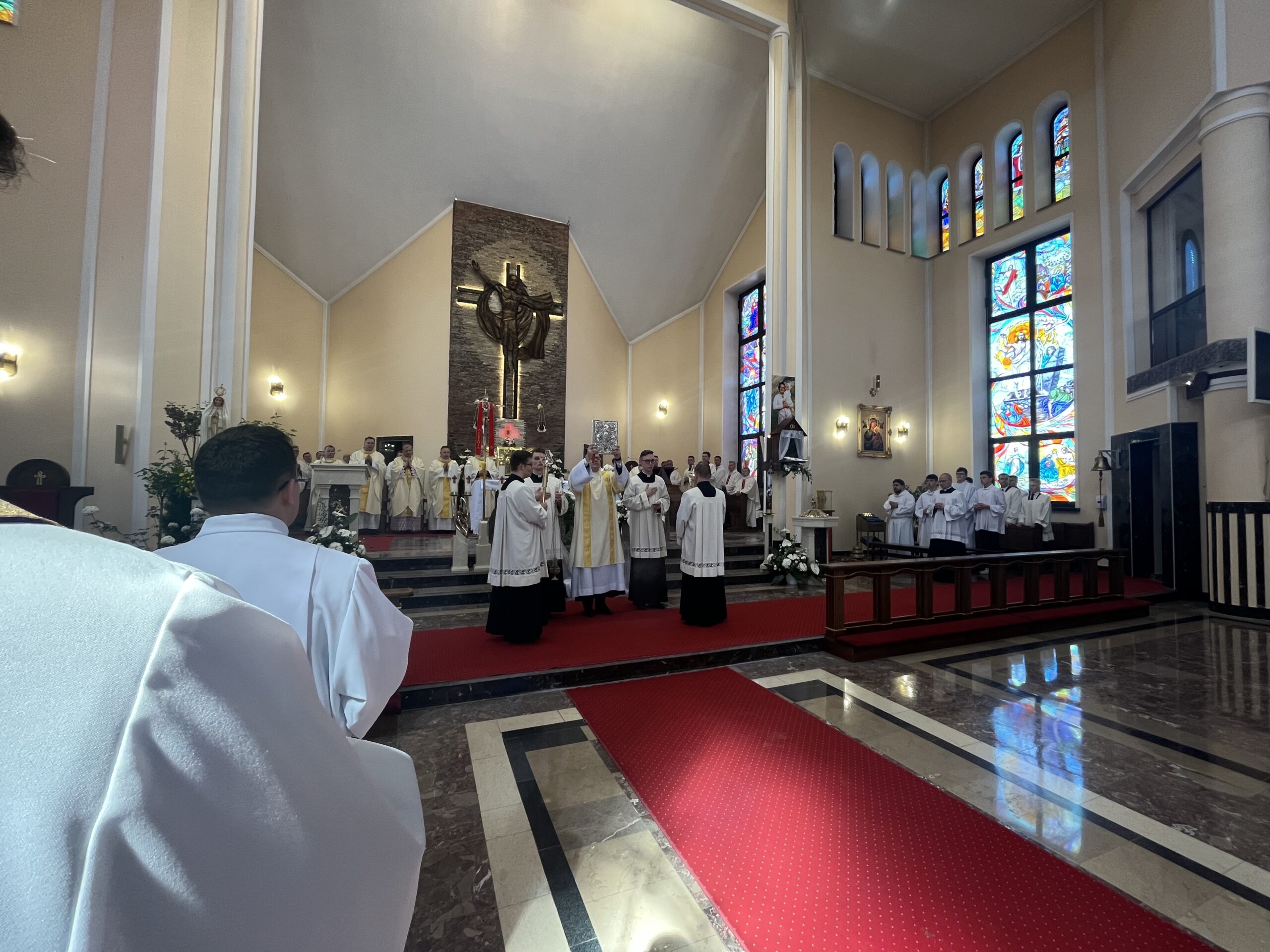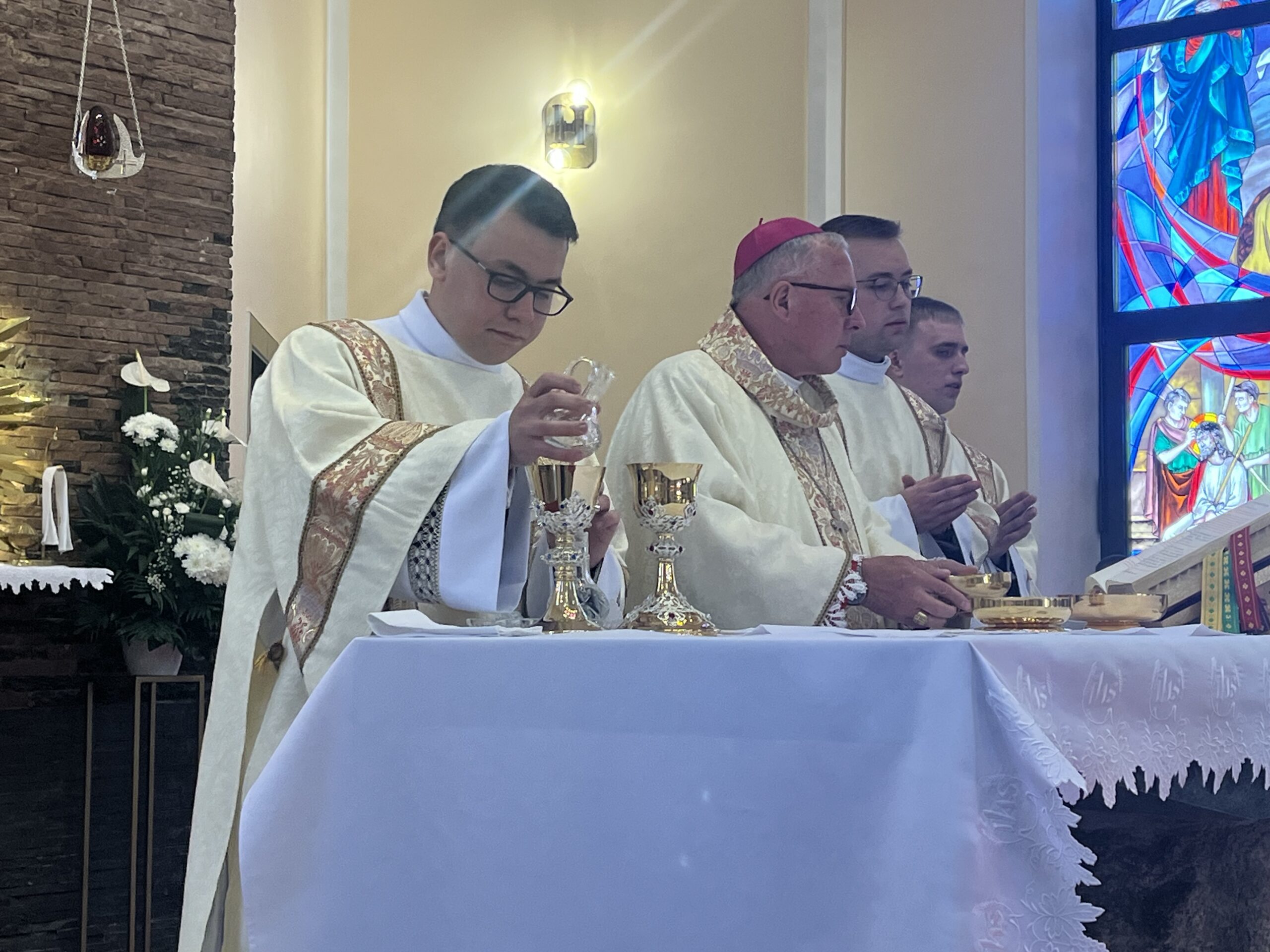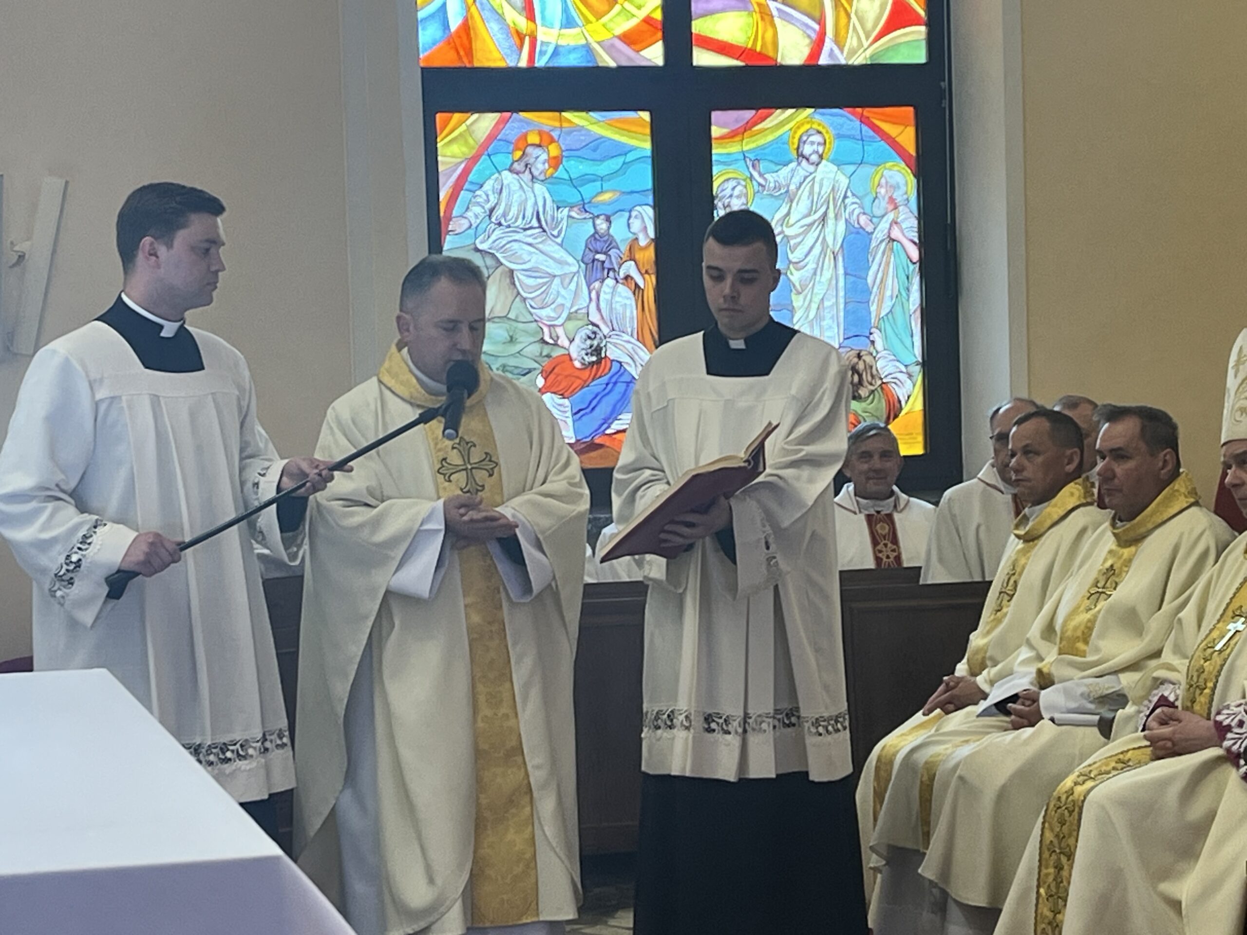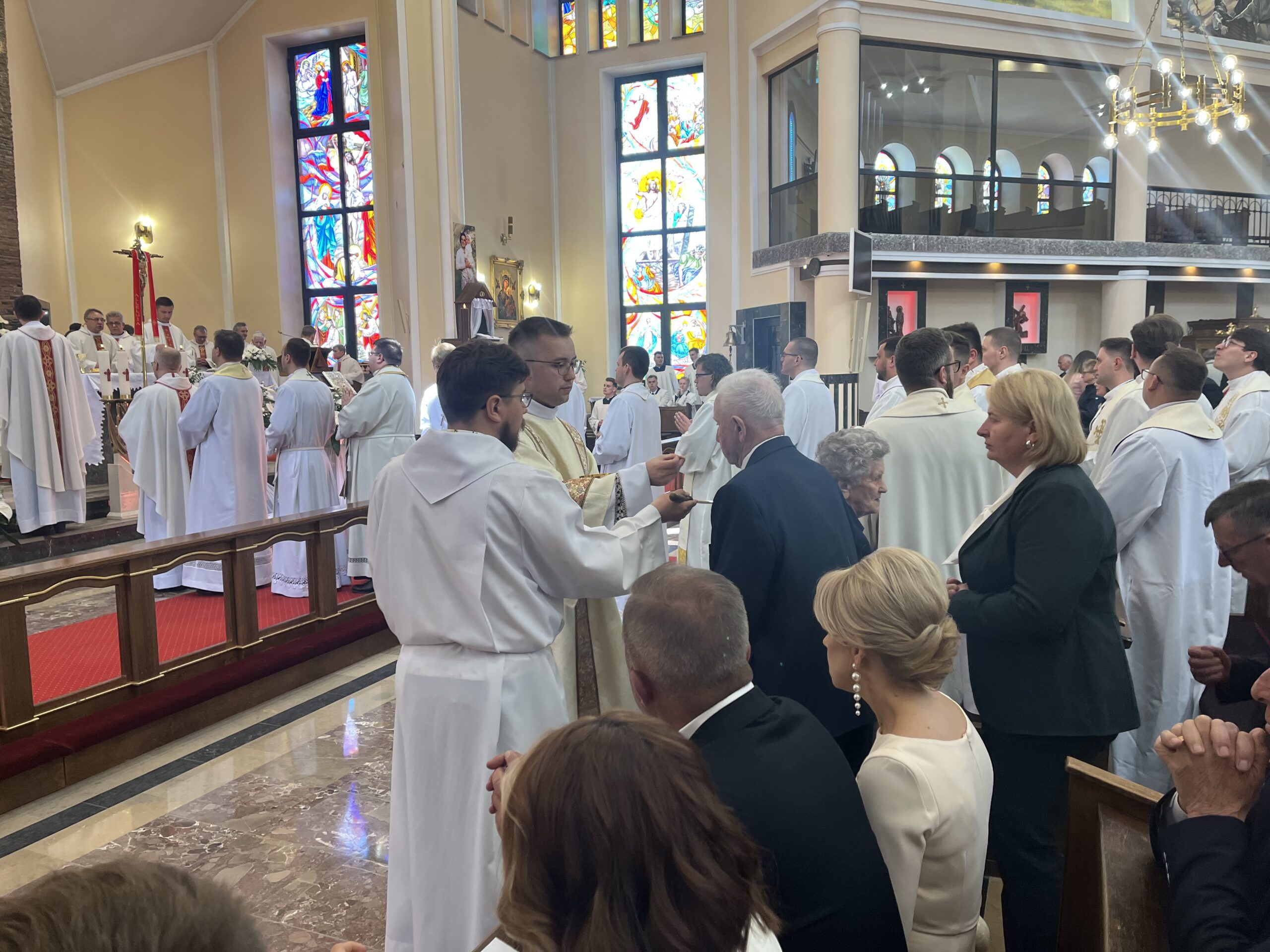 Eucharystii przewodniczył ks. bp Janusz Stepnowski, ordynariusz diecezji łomżyńskiej, wraz z ks. bpem Tadeuszem Bronakowskim oraz licznie zgromadzonym duchowieństwem. Kościół został zapełniony najbliższą rodziną i przyjaciółmi alumnów przyjmujących święcenia. O przebieg liturgii zadbał ceremoniarz diecezjalny ks. dr Krzysztof Chodkowski, a o piękno śpiewu chór seminaryjny połączony z chórem parafialnym pod batutą ks. dr Kazimierza Ostrowskiego wraz ze wsparciem dwóch organistów.