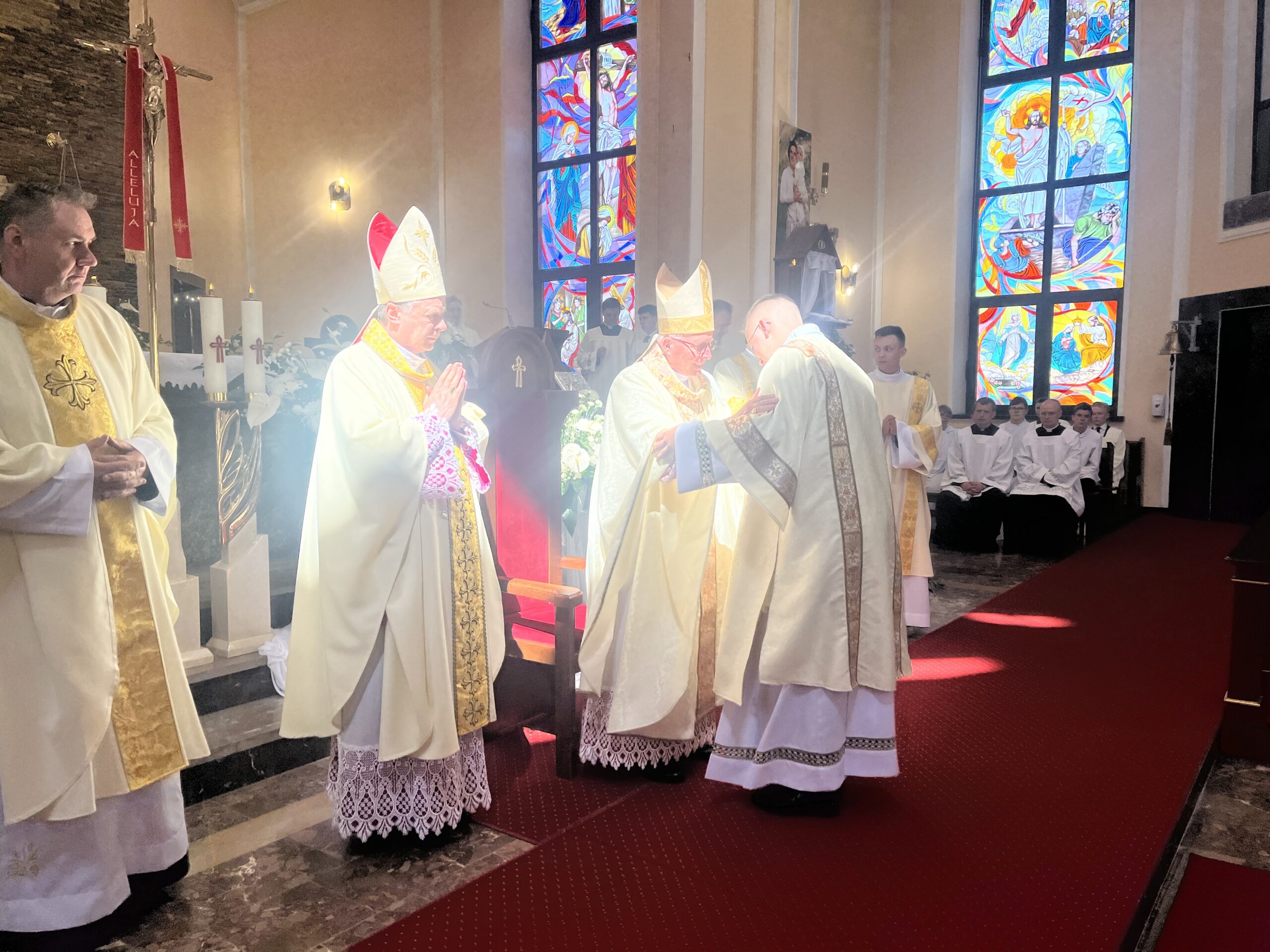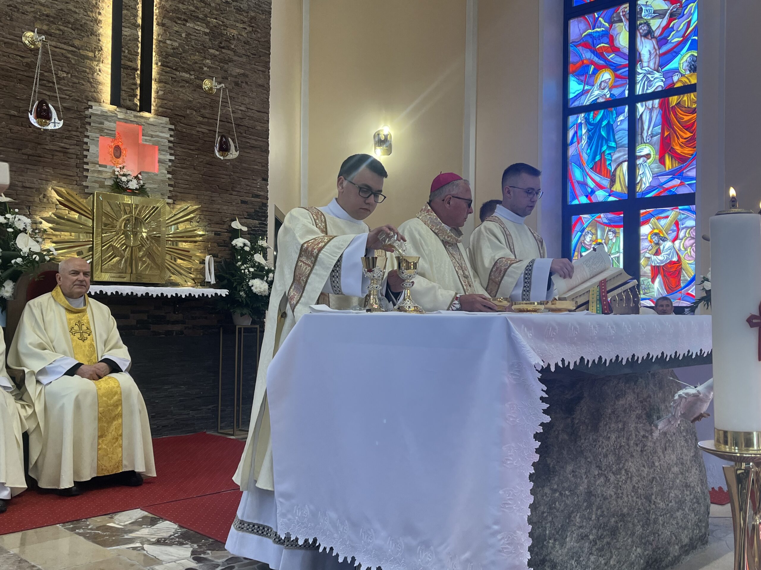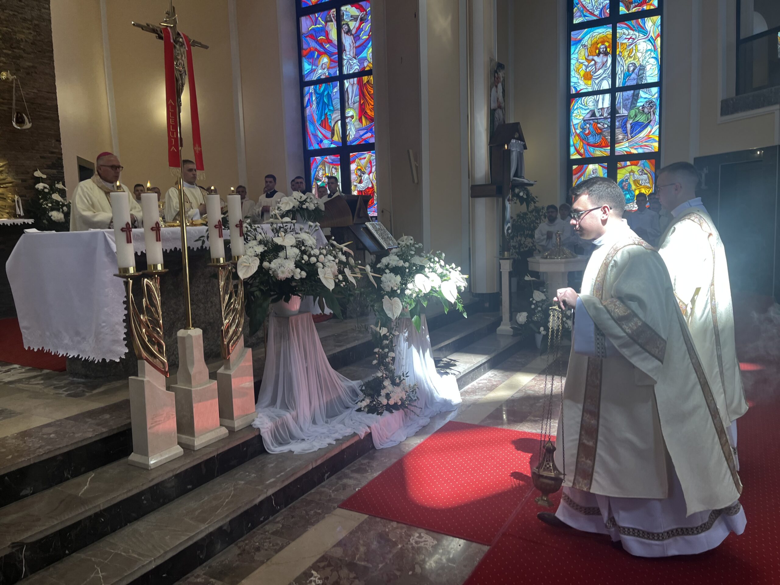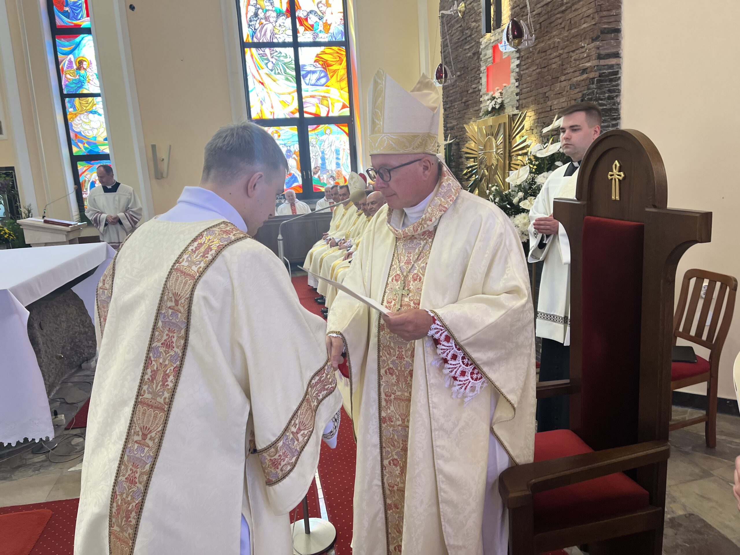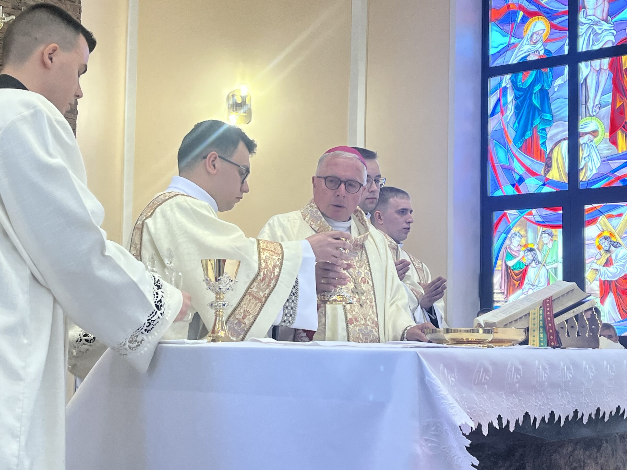 Eucharystii przewodniczył ks. bp Janusz Stepnowski, ordynariusz diecezji łomżyńskiej, wraz z ks. bpem Tadeuszem Bronakowskim oraz licznie zgromadzonym duchowieństwem. Kościół został zapełniony najbliższą rodziną i przyjaciółmi alumnów przyjmujących święcenia. O przebieg liturgii zadbał ceremoniarz diecezjalny ks. dr Krzysztof Chodkowski, a o piękno śpiewu chór seminaryjny połączony z chórem parafialnym pod batutą ks. dr Kazimierza Ostrowskiego wraz ze wsparciem dwóch organistów.