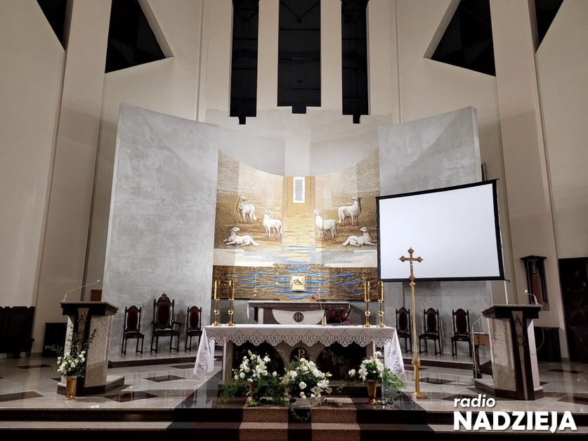 W kościele Dobrego Pasterza w Ostrowi Mazowieckiej „rzeka życia” wypływa ze „Świętego Świętych” – tabernakulum, czyli miejsca, gdzie przebywa Żywy i Prawdziwy Jezus Chrystus Zbawiciel.