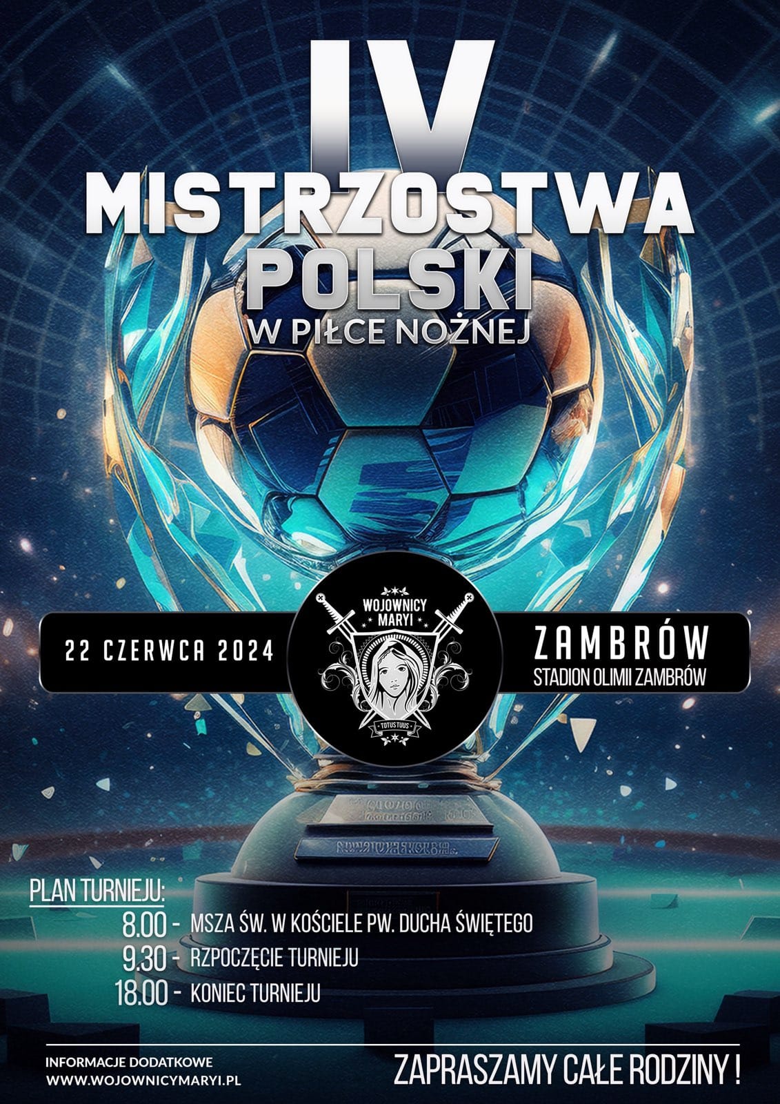 Już w najbliższą sobotę (22.06) w Zambrowie na boisku zmierzą się Wojownicy Maryi podczas Ogólnopolskich Mistrzostw w Piłce Nożnej. W wydarzeniu udział wezmą uczestnicy m.in. z Kielc, Augustowa czy Krakowa, a także drużyna z Londynu.